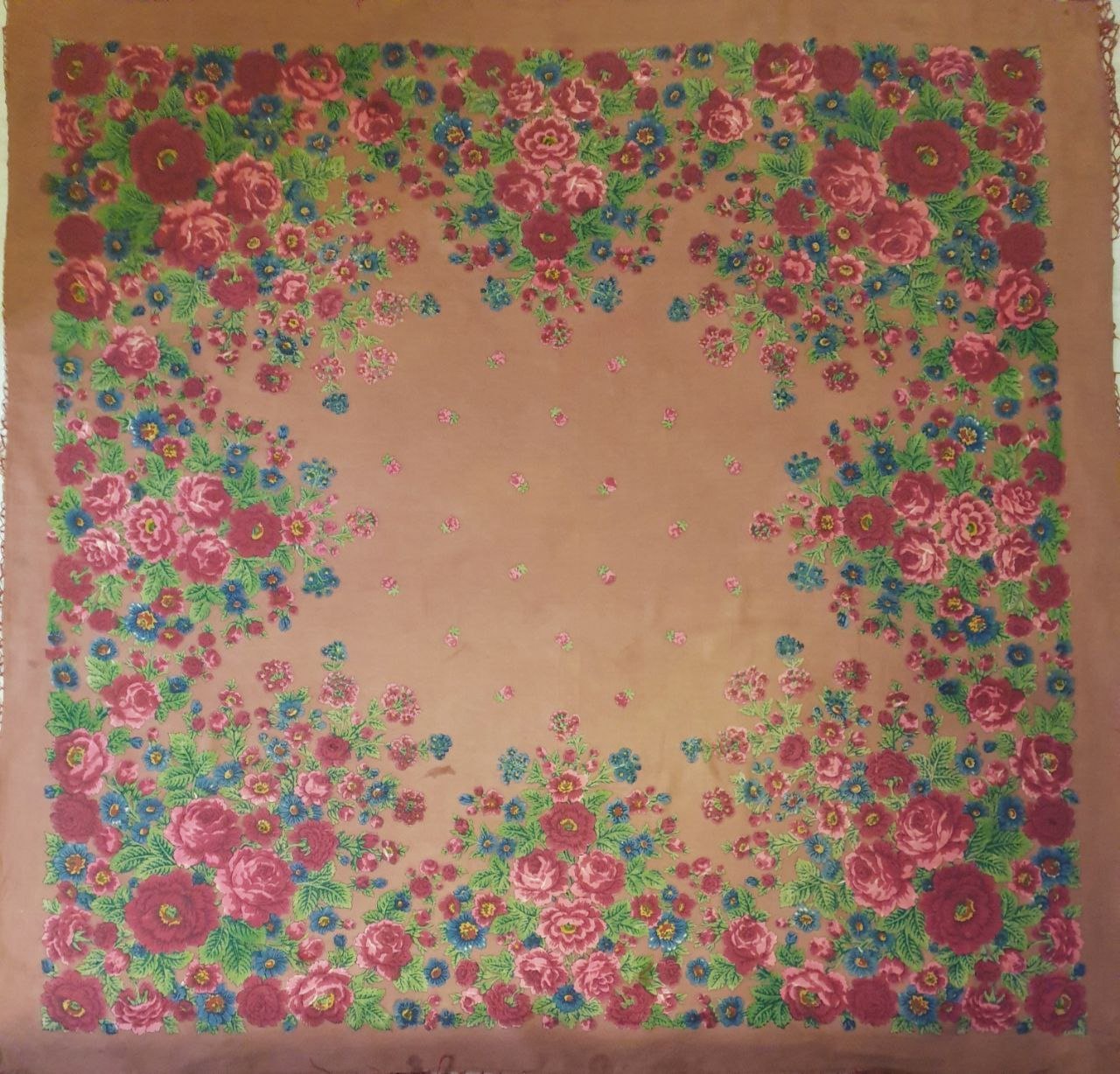 Сегодня в метро видела много девушек и дам в возрасте в павловопосадских платках. Вот этот платок вызвал сомнения. Вроде бы павловопосадский? Рисунок кажется знакомым.