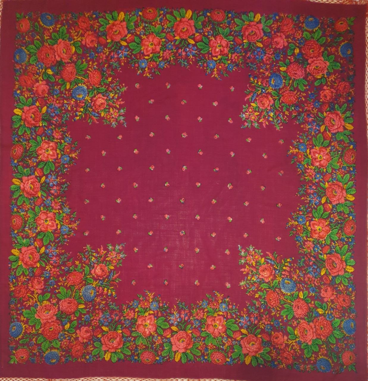 Тоже засматривалась на эти платочки - какие чудесные васильки на красном шерстяном! Но аналогов не нашла, может, плохо смотрела. В любом случае - великолепные платки!