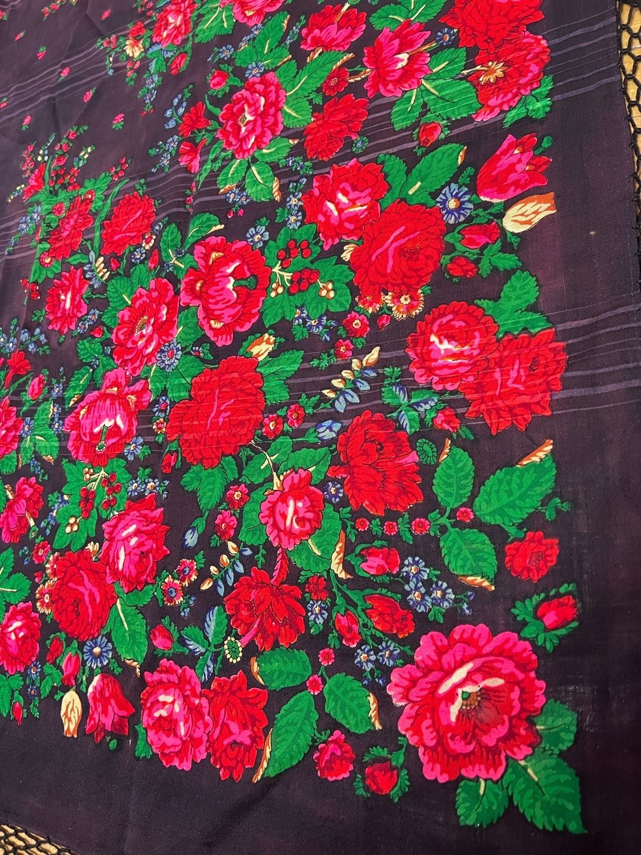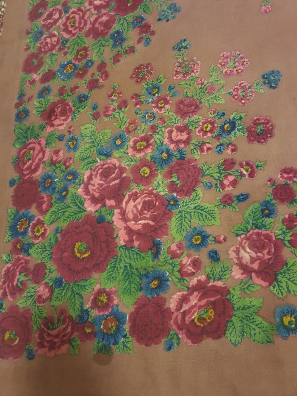 Продавала его внучка одной бабушки,а бабушке он достался от её мамы( также пережил войну).Больше информации не смогла узнать. Сохранность хорошая,разрывов нет,порвана местами только бахрома.