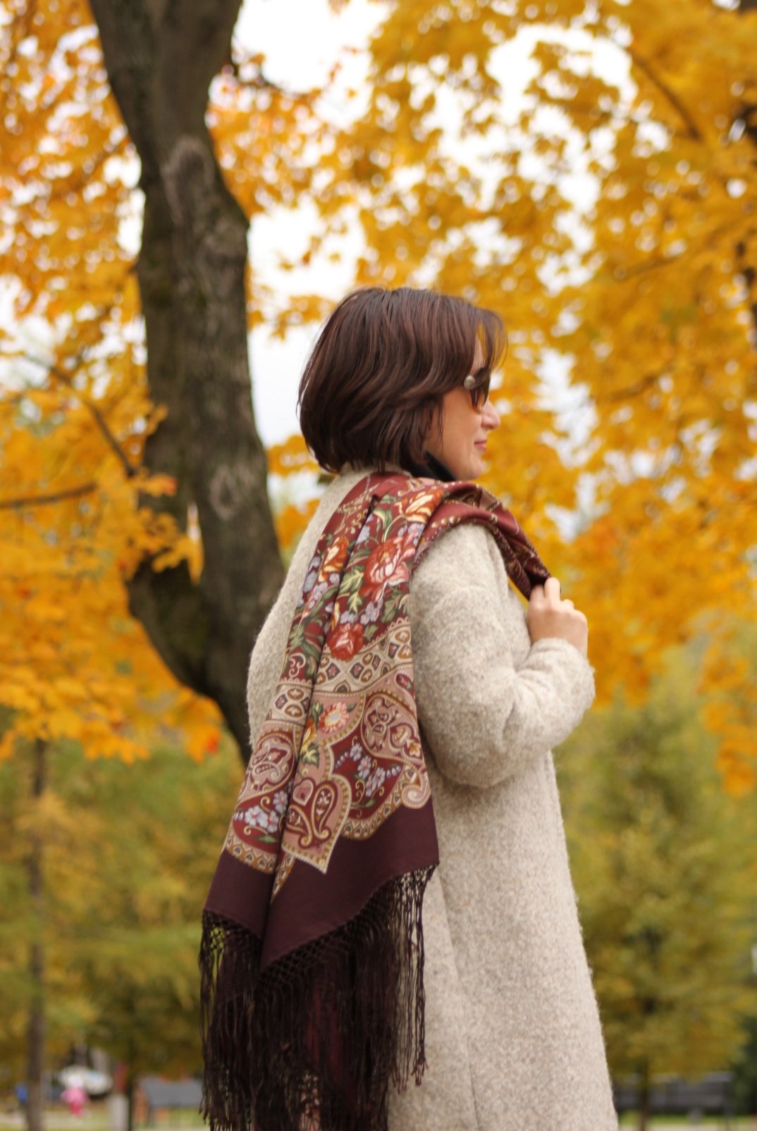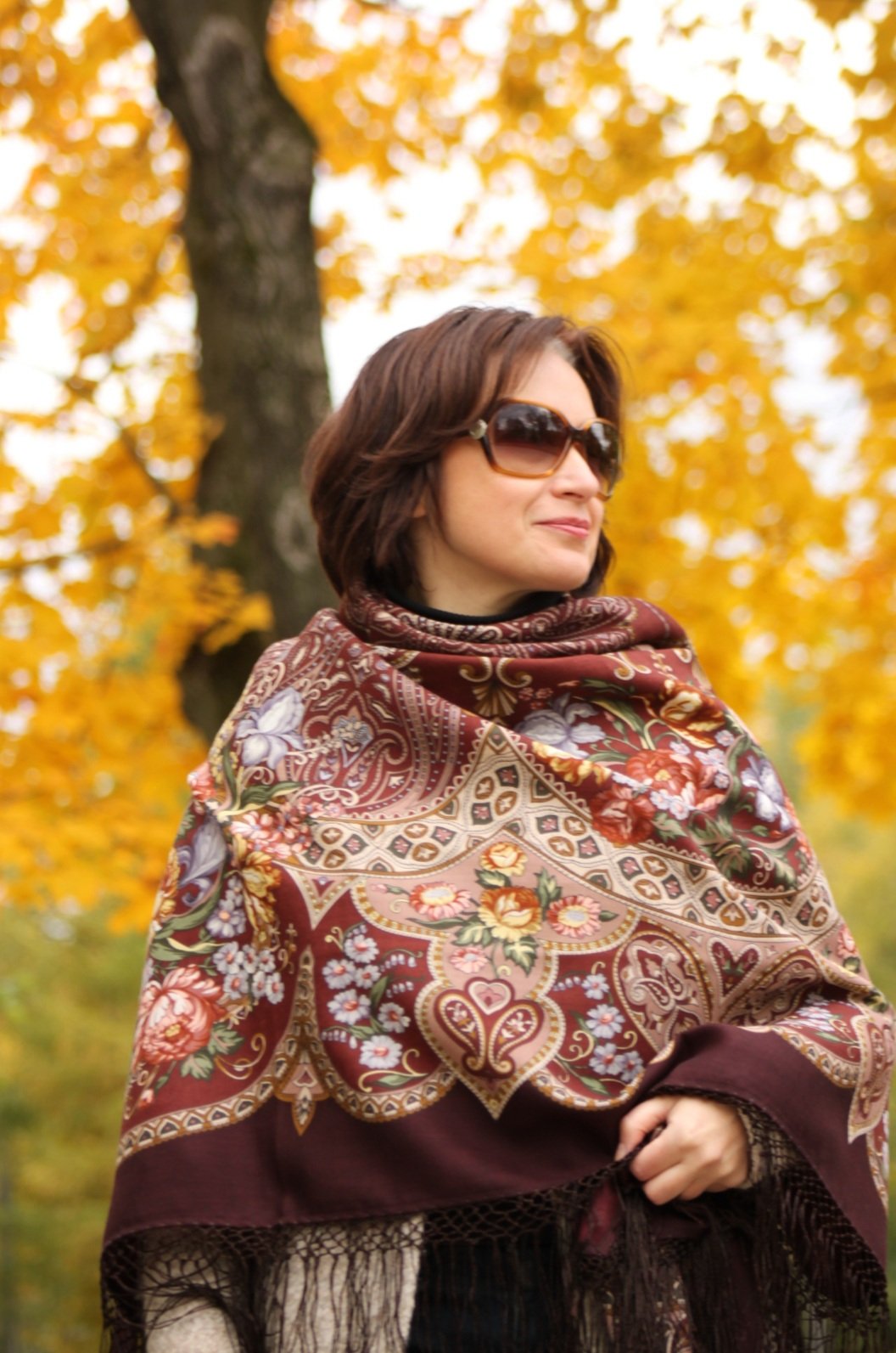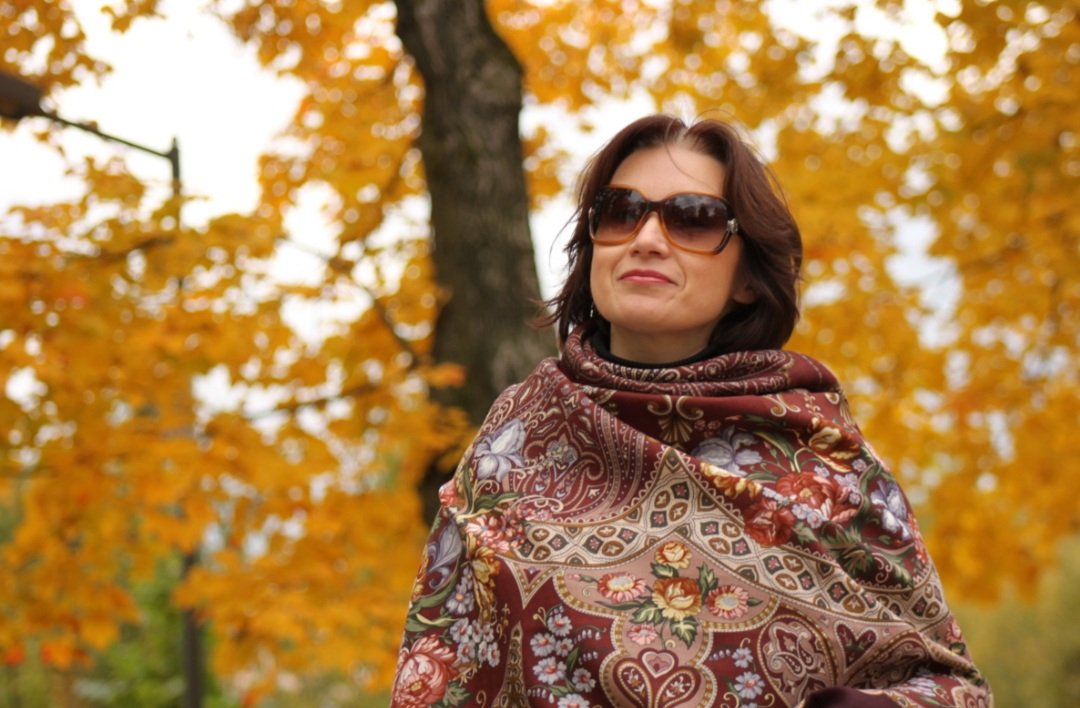 Oreshka с орешками каштанами :<>: ! Незабываемая :: ! Люба, как же хорошо тебе осень и все эти шали! Красивая, стройная, улыбающаяся - вдохновляешь (*-( . И у меня они все есть, очень любимы, но ни одну ещё не надевала в эту осень. Вообще, коричневый цвет полюбила благодаря павловопосадским платкам, и вечно не могу устоять перед этим колоритом. А благодаря этим твоим показам захотелось достать и срочно надеть ^Y .