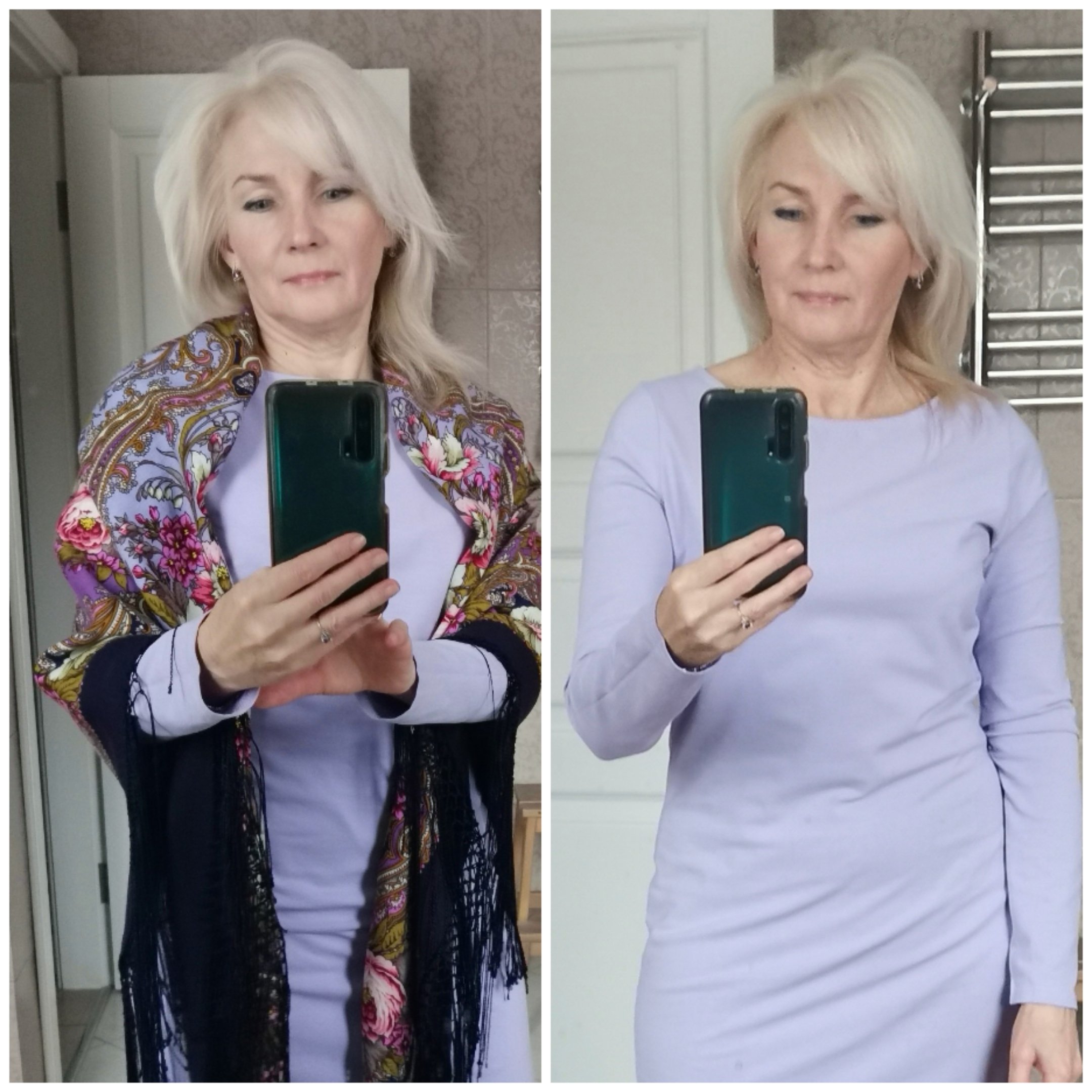 Я очень хотела носить больше светлого зимой, и вот эта кайма вносит графичность и не дает образу расплыться в облако)) Сравните просто светлое платье и платье с шалью.