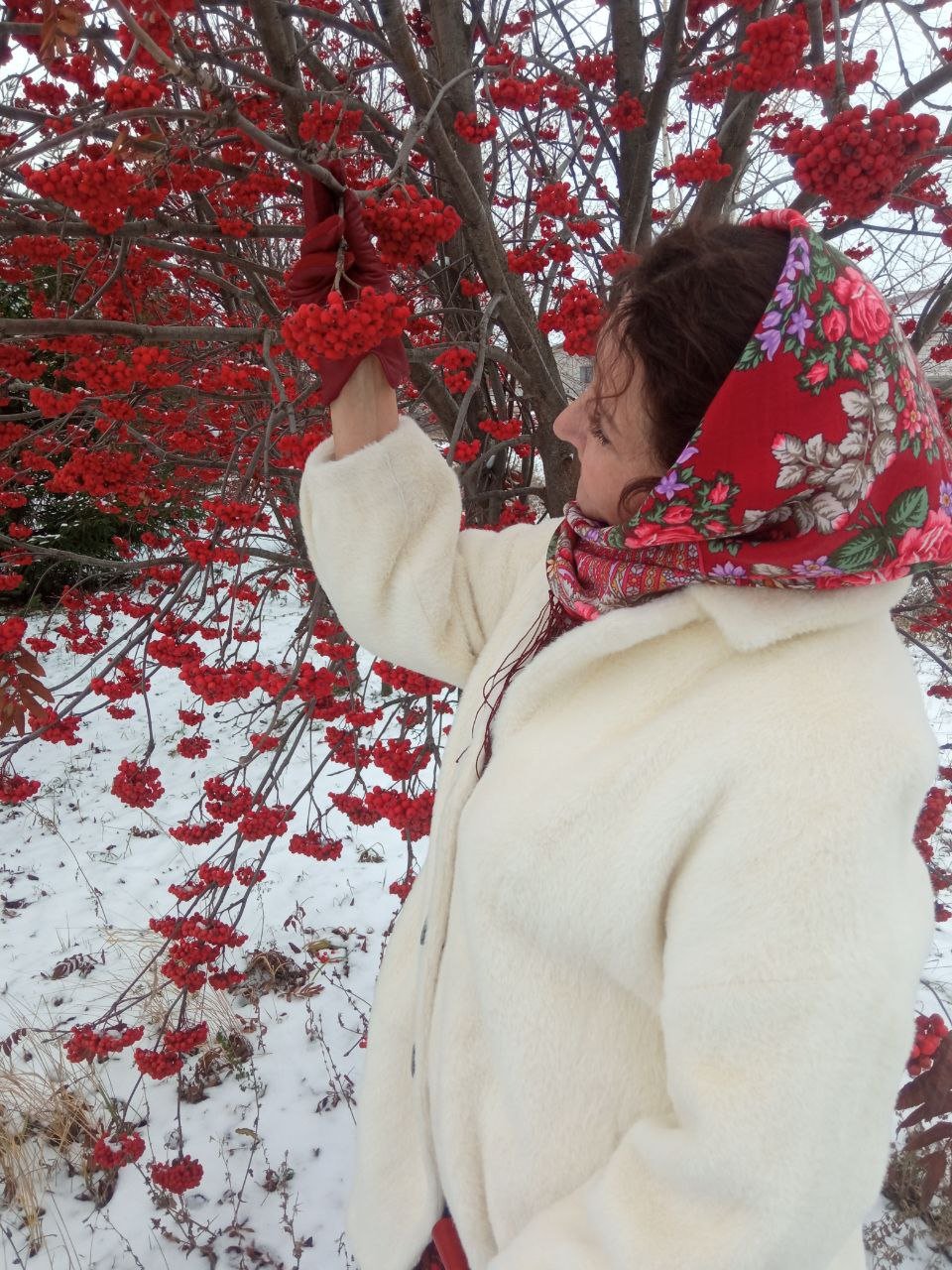 Уже так хочется снега ....но пока вокруг серо и пасмурно . Хорошо, что есть наши яркие платки и шали, правда ?