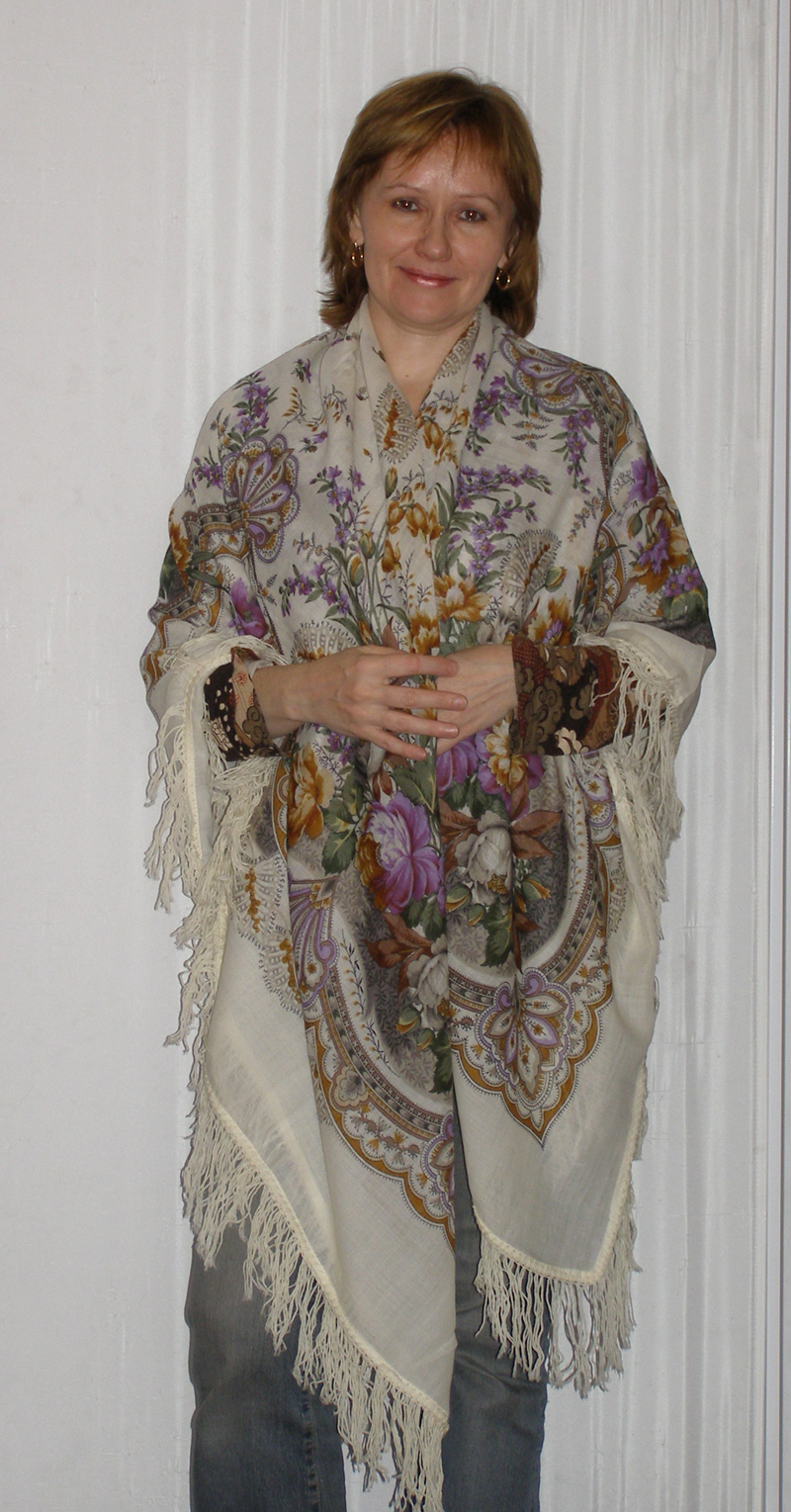 Sveta! Я от души за Вас рада; Вам повезло купить редчайший экземпляр, (возможно сделанный на экспорт?) шали действительно сливочного цвета. Ни секунды бы не сомневалась, если бы встретила ее, мою золотую красавицу-"Волшебницу"!!!! Но! Всякий раз это было лишь бледное (А иногда и весьма ядреного горчичного! цвета )подобие той роскошной шали, которую Вы так замечательно, динамично демонстрируете! Юная, стройная, гибкая девушка, которой шаль добавила шарма и интриги! Умница!