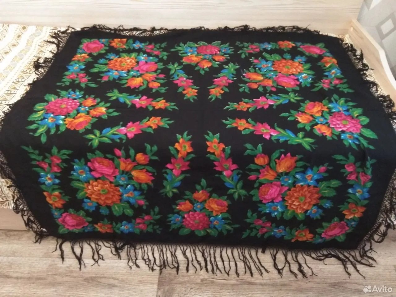 В Телеграм Старинный, шерстяной платок. Размеры: 140-137 без учета бахромы.