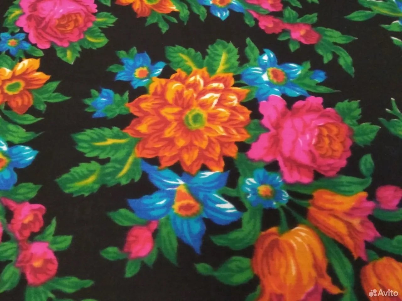 Платок шерстяной с цветами и фруктами. 1-я половина ХХ века. Размер 150 х 148 см.