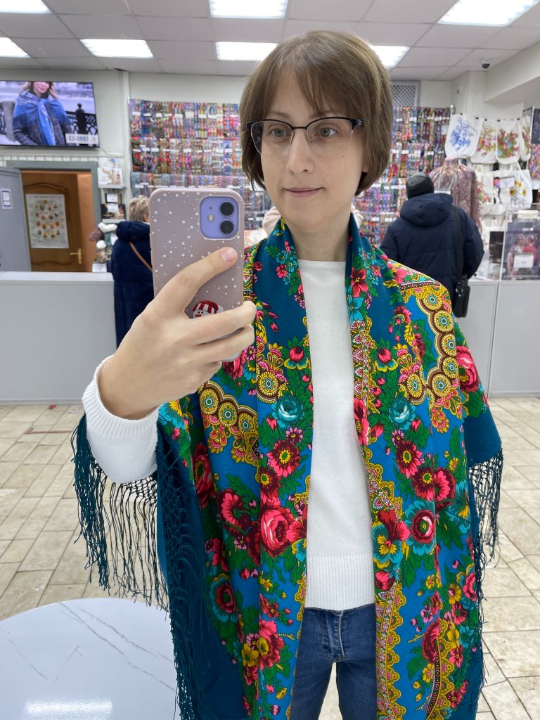 Тут, конечно, не видно, но межете поверить - на мне черные сапоги :lol: и весь образ смотрится просто улетно! Я пересылала фотографии маме и мне кажется, что она прямо болела за этот платок.