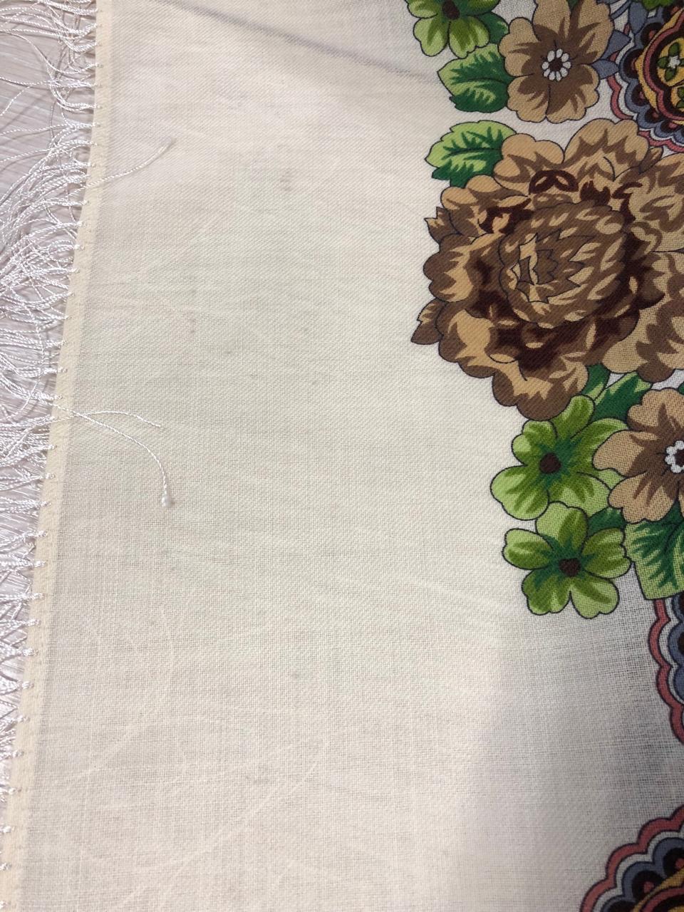 Примерила один Край сандала, карамельный. Был и зелёный, но сил уже не было, в другой раз. На сайте показался темнее. Цвета не мои, но красивый такой платок, воздушный и уютный одновременно.