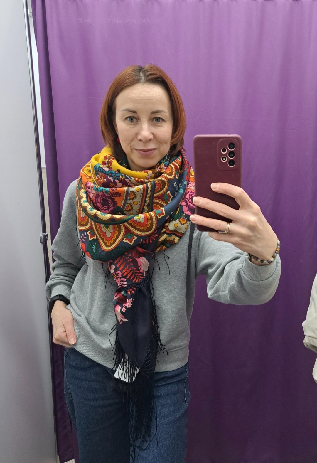 Шаль суперская очень позитивная, мне на Вас нравится, Марина.