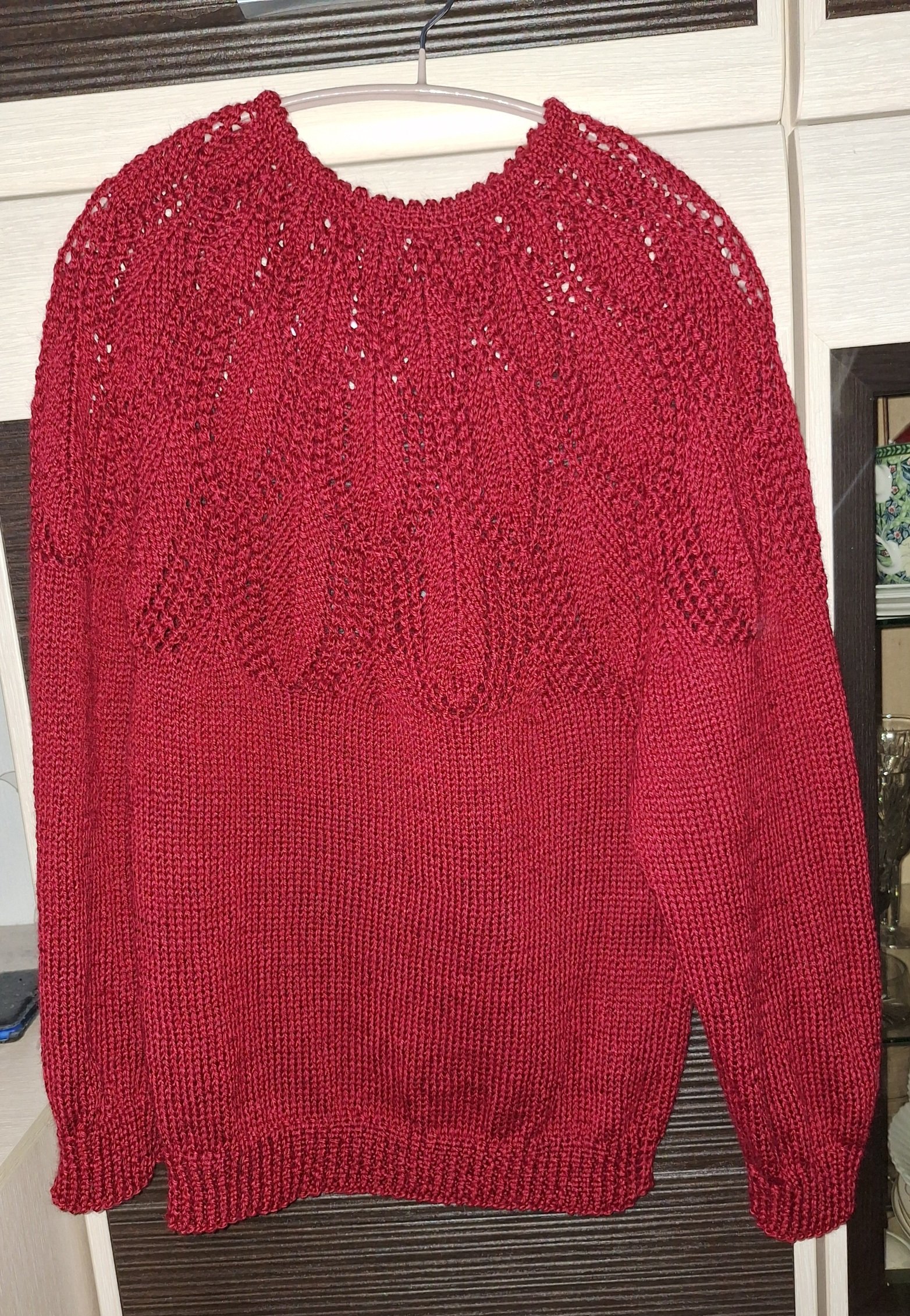 Безоблачно, - особенно понравился бордовый джемпер. Но хлопковую пряжу - на спицах - и чтобы так ровно получилось .... Снимаю шляпу.