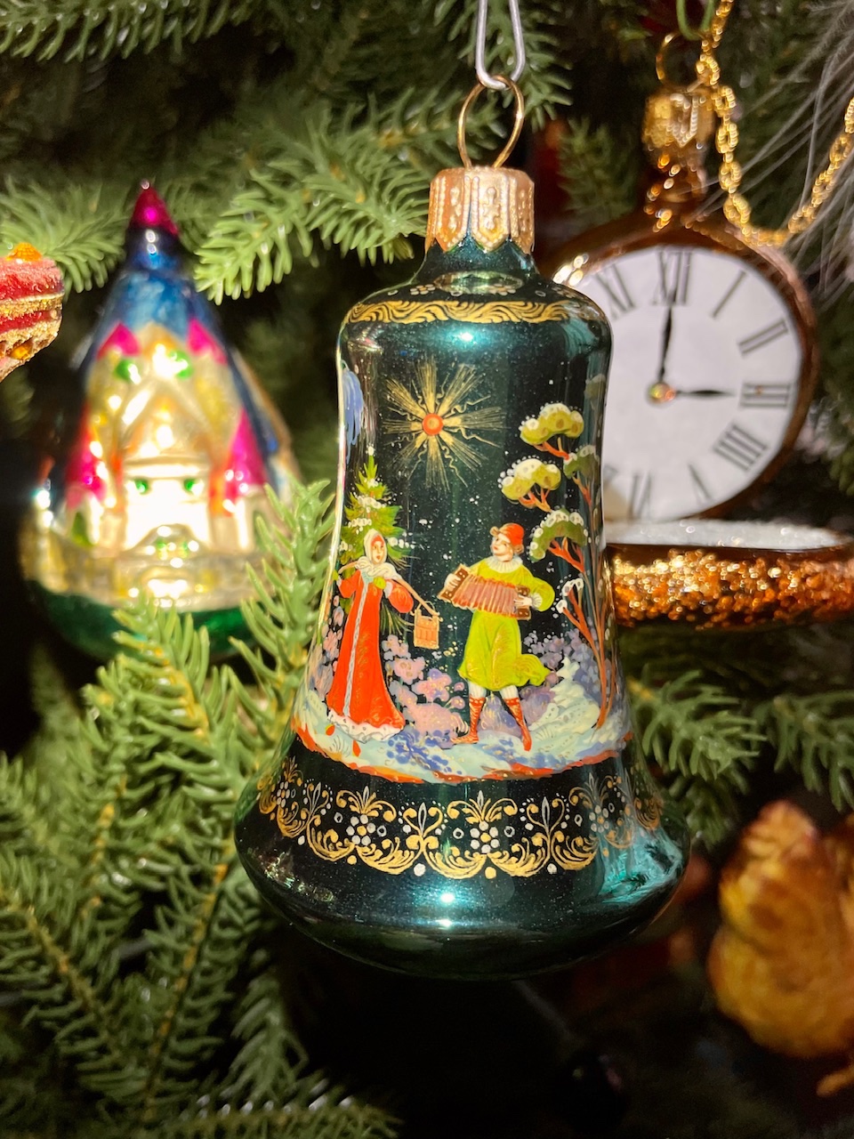 Игрушка для Эрмитажа — лауреат ежегодного конкурса, который проводит Эрмитаж. Эта игрушка создавалась в номинации «Профессиональные мастера», художником Алевтиной Герсенко. По результатам голосования оказалась на 3 месте. Она осталась в коллекции елочных игрушек Эрмитажа. У меня третий дубль от автора. Больше их нет. Металическая часть сделана в техники филиграни и витража, а тонкая стеклянная капля расписана в технике гризайль