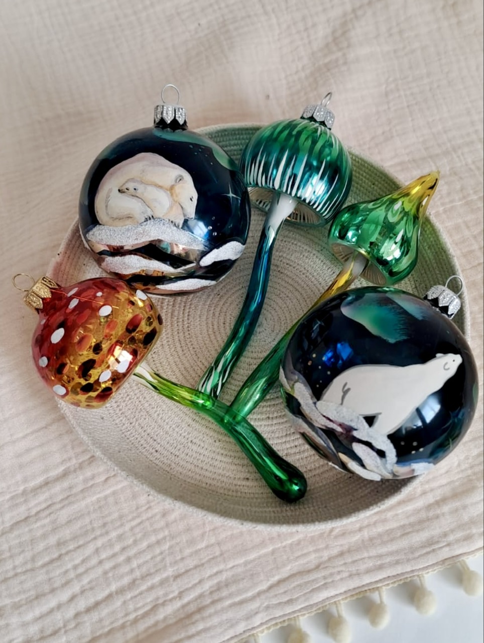А я еще и на втором плане игрушки в который раз рассматриваю и насмотреться не могу. Очень красиво! И к развешиванию игрушек Вы, как мне кажется, очень творчески подошли, не абы как навешали без разбору...