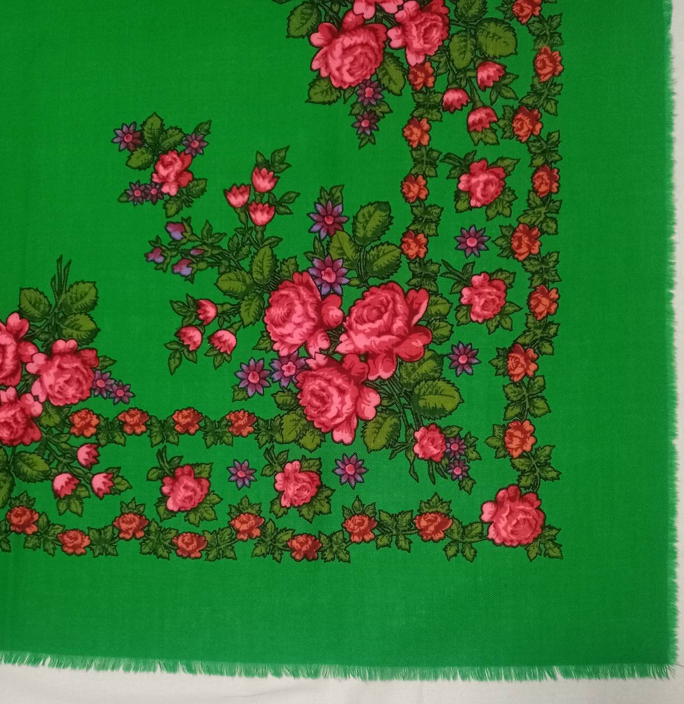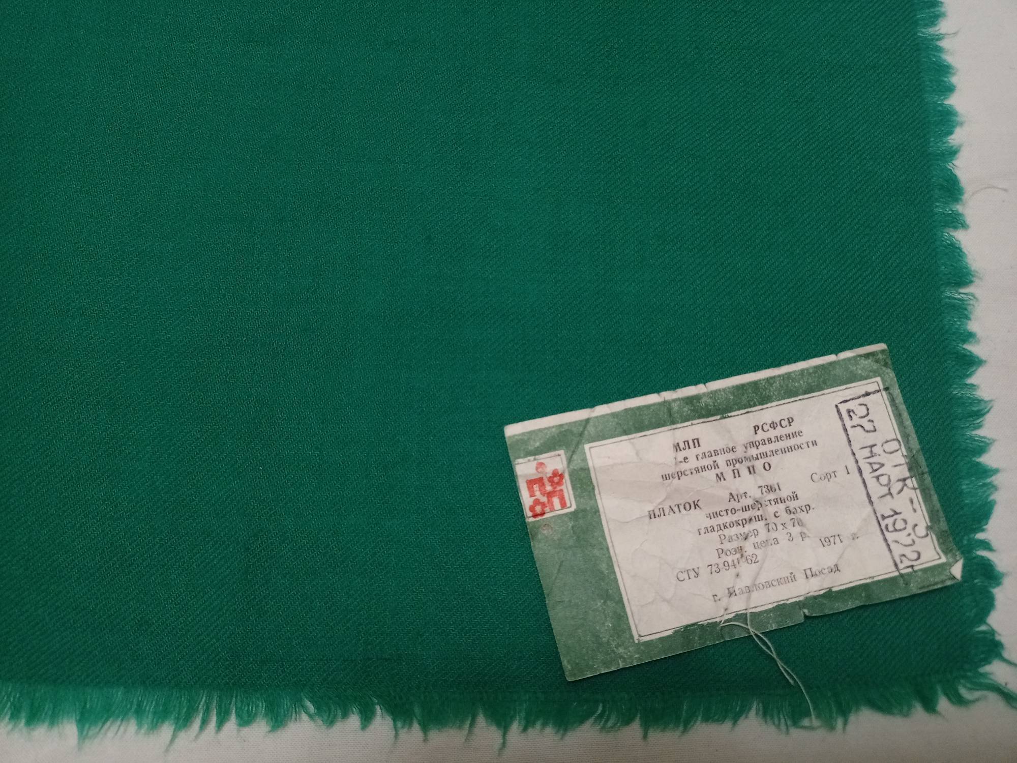 Сравнение с типичным винтажным зелёным цветом платка ппу_26. У однотонного изумрудный оттенок.
