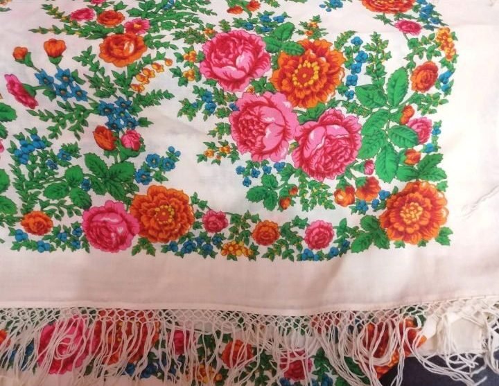 Перед НГ получила вот такую красавицу, ручной набойки с шикарной бахромой. Потрясающее состояние!
