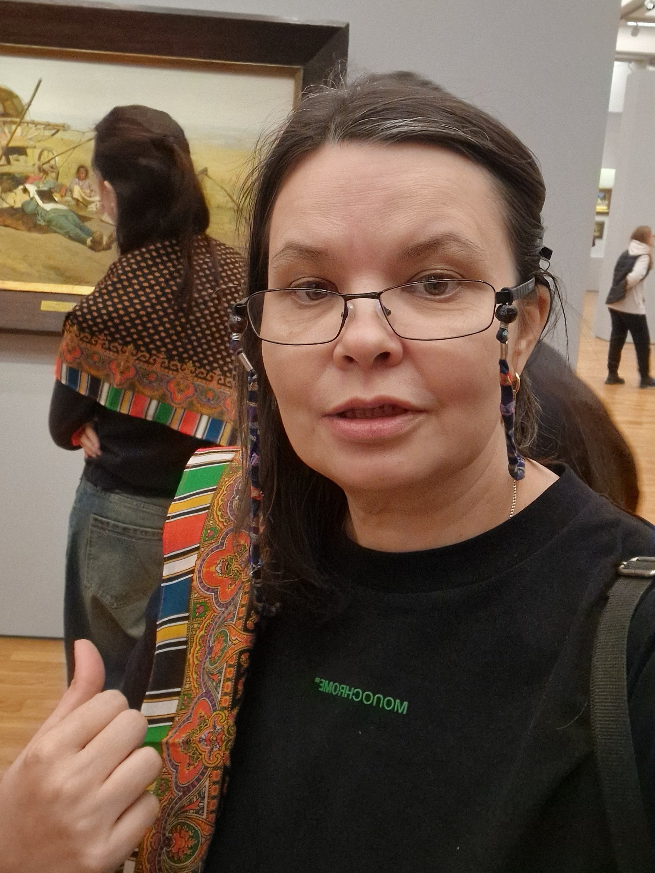Вчера в музее мы с незнакомой девушкой были в одинаковых платках 'Восточная кайма'.