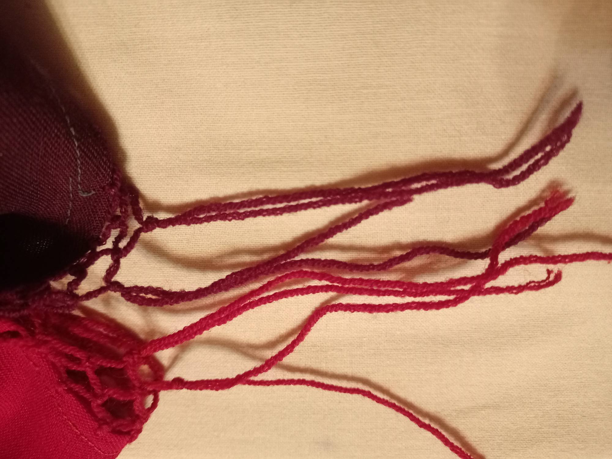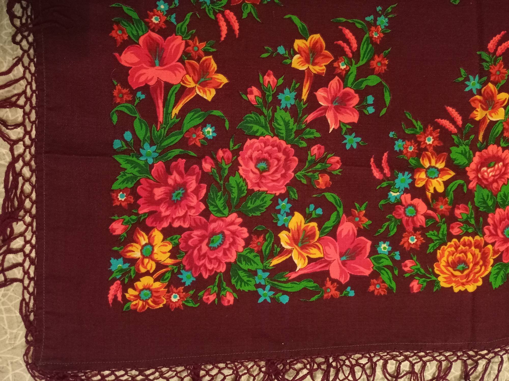 Бордовая бахрома принадлежит другому платку, неизвестному пока на нашем форуме. Приобретён, скорее всего, в то же время и в том же месте.