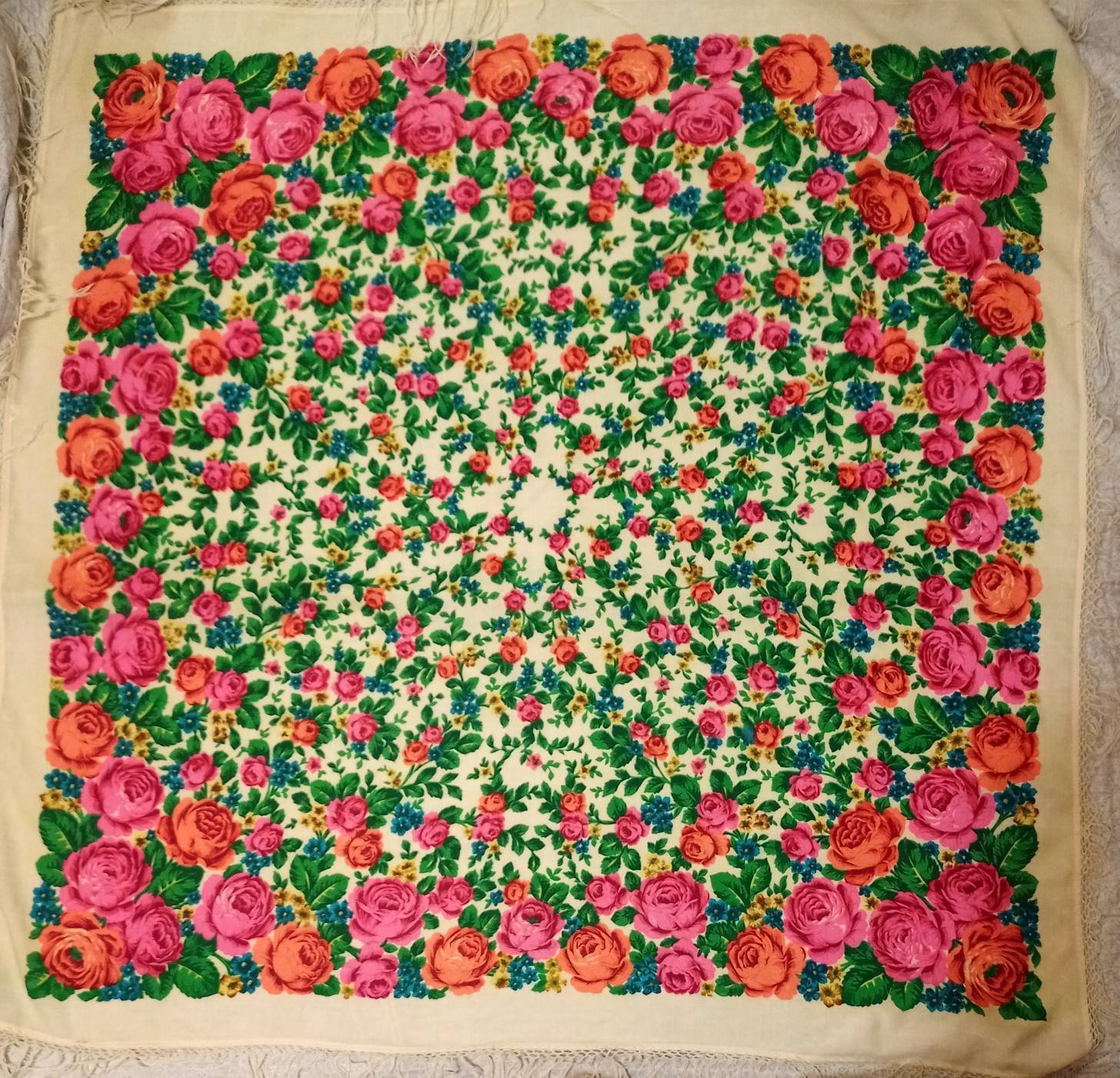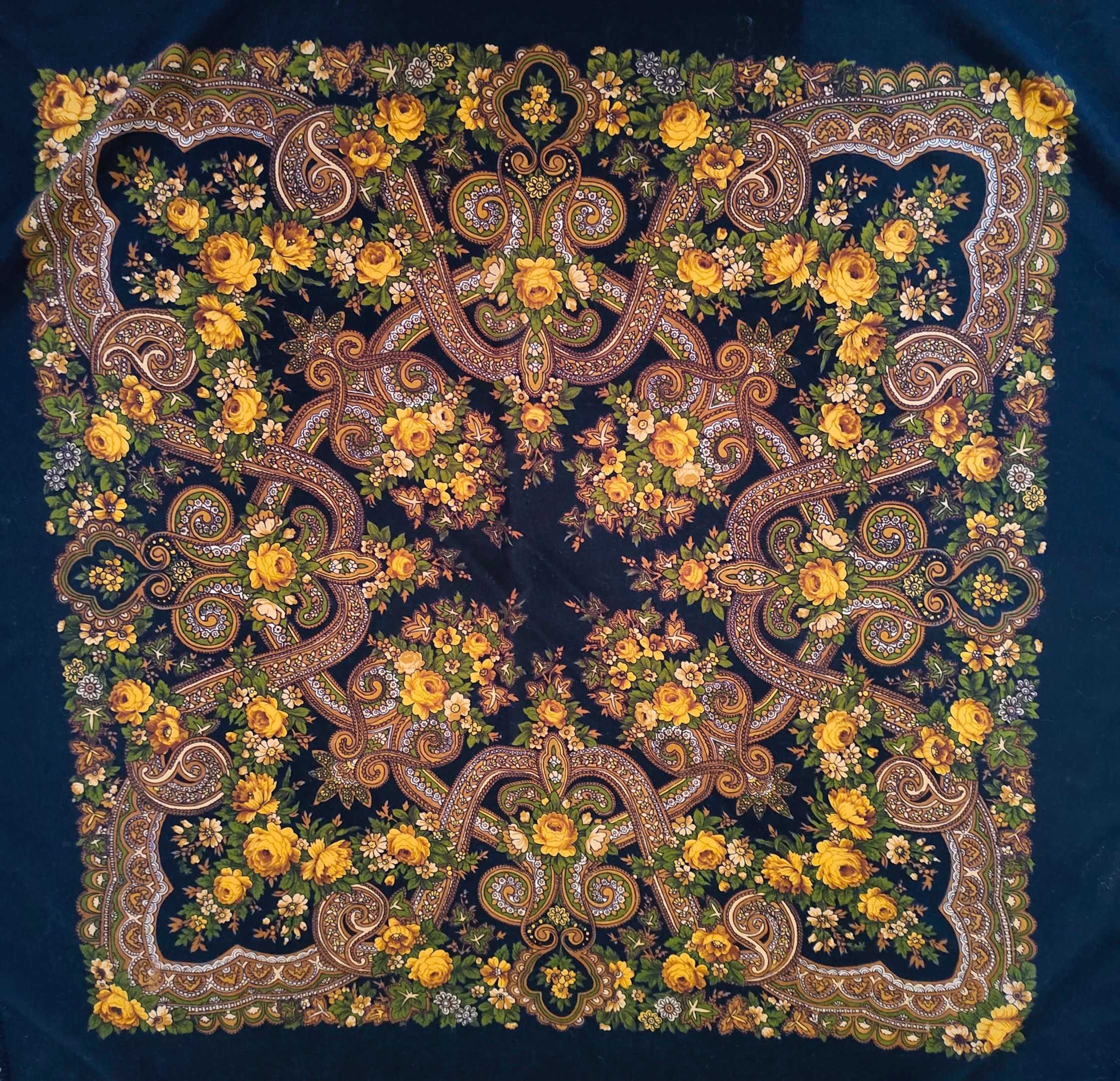 Слащева -мастер мелких деталей, все эти бесчисленные листки такие живые, разные,такие непринужденные, прелесть! Потихоньку реставрирую новую Кудельку, есть мелкие потертости. Но главная ее беда в другом: она хранилась сложенной нестираной, и избыток краски на платке отпечатался на фоне((Гостья-весна писал(а): ↑09 фев 2025, 18:40Не удержусь и тоже покажу любимые платки Н.И. Слащёвой. ППД_41 и ППБ_38.