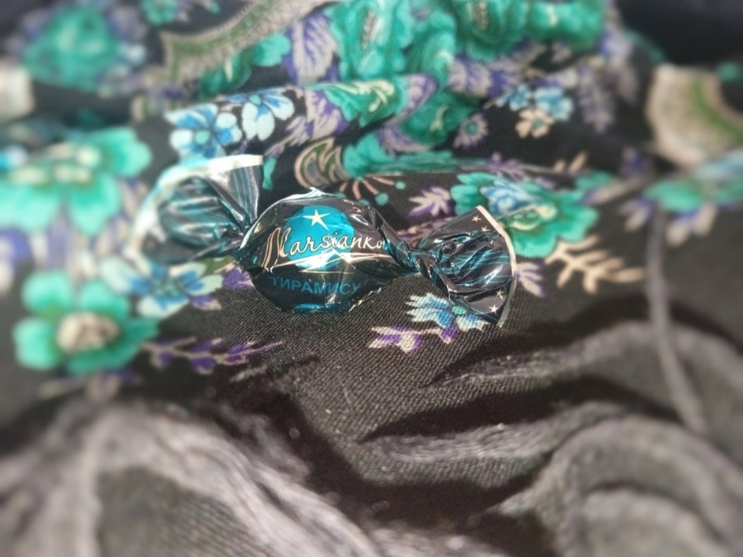 Но есть еще любимица, космическая "Русская красавица" старой печати на чёрном поле. Вот она, родимая, позировала мне с конфетами "Марсианка".😋