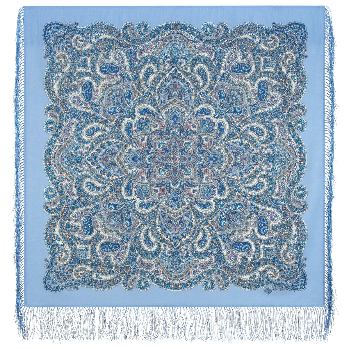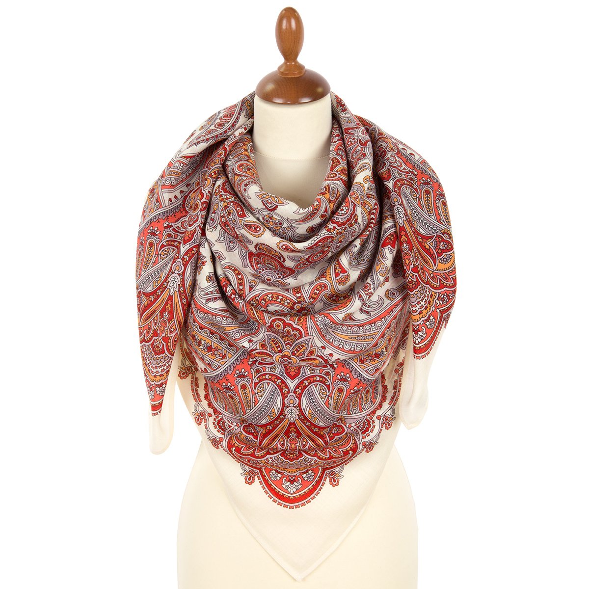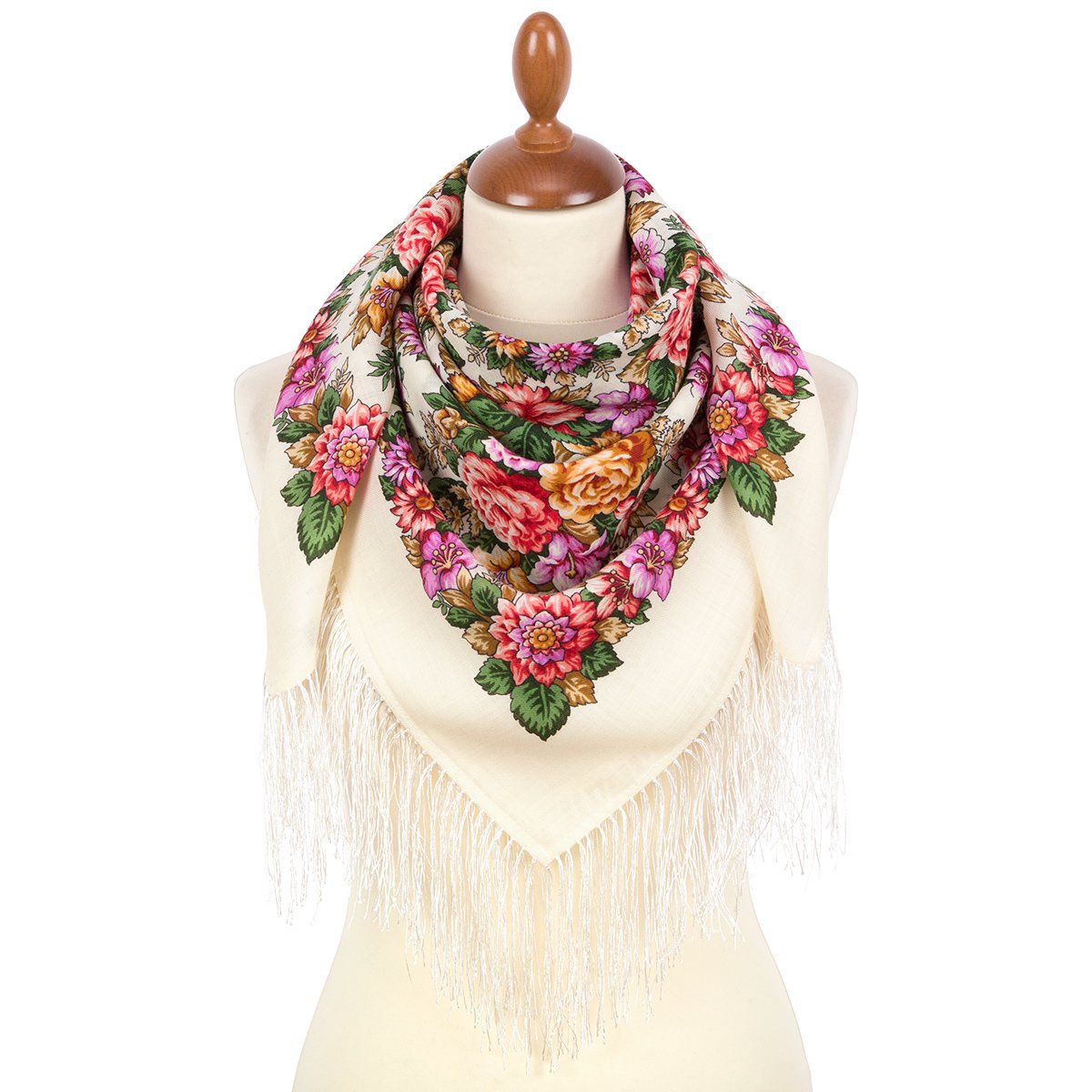 Платок шерстяной с шелковой бахромой, 146x146 см