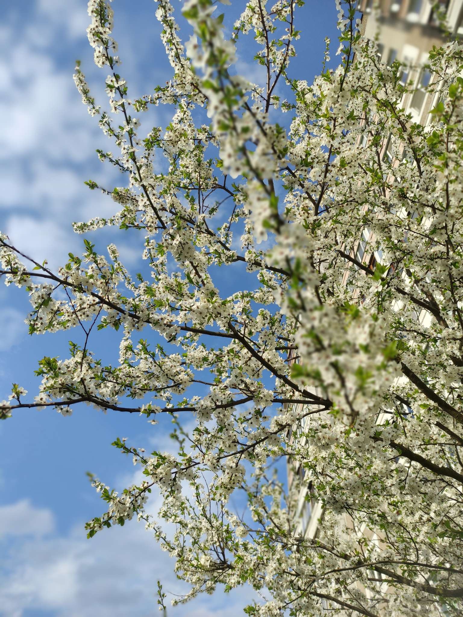 Аномально жаркий апрель. С конца прошлой недели город накрыло белое облако цветения. Красота!