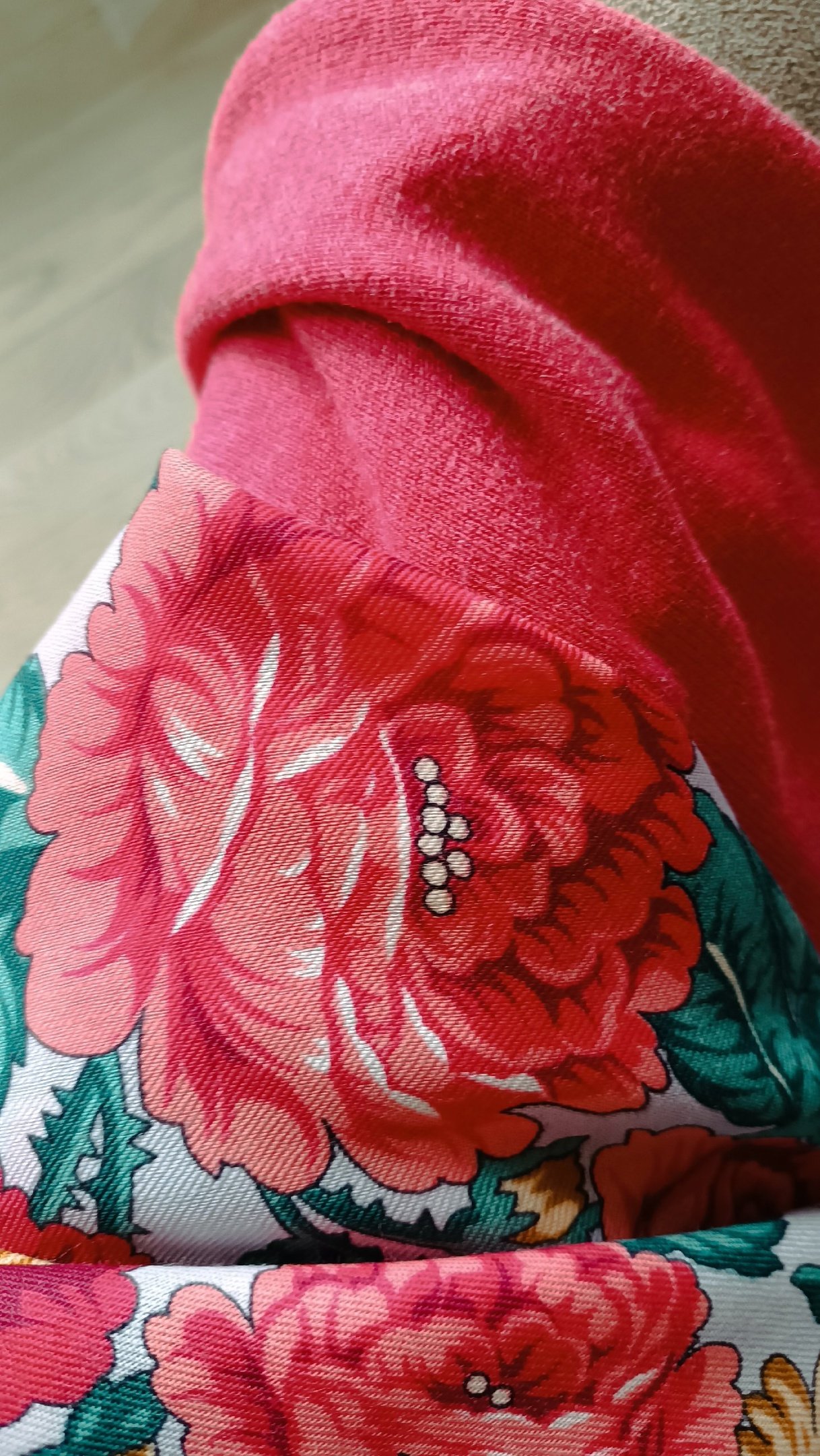 Ехала за Великолепным веком, но в стандарте оставался только один ненужный мне колорит, а 1 сорт можно купить и на ВБ даже дешевле. Соблазнилась на хороший экземпляр Ноктюрна 3. Очень красивый платок, но будет непростым в носке, требует соответствовать.
