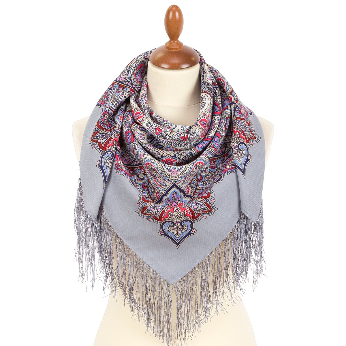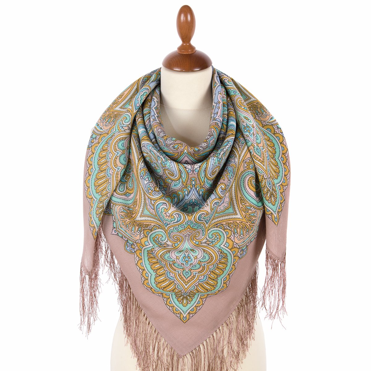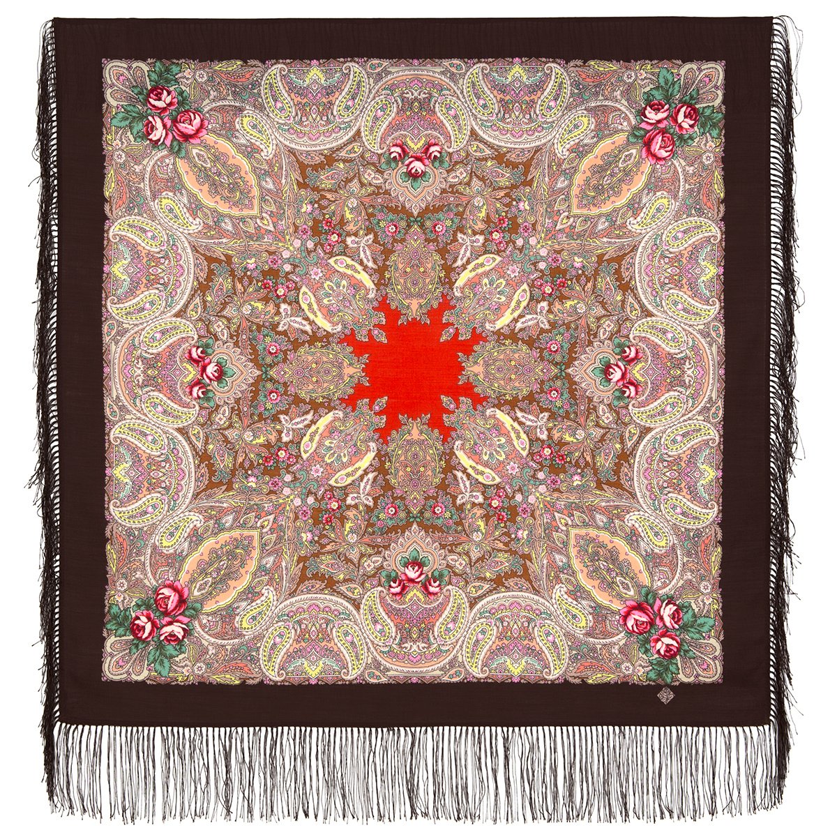 Платок шерстяной с шелковой бахромой, 110х110 см
