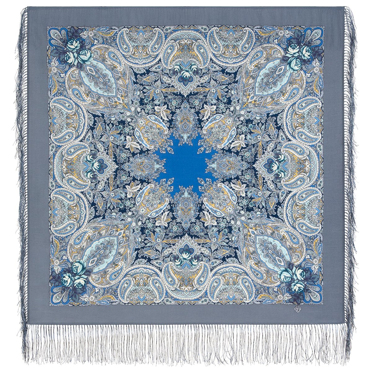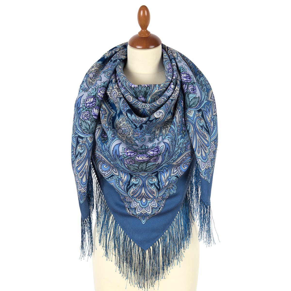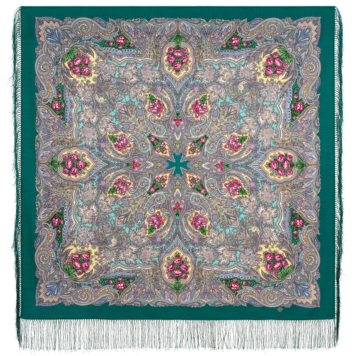 Платок шерстяной с шелковой бахромой, 110х110 см