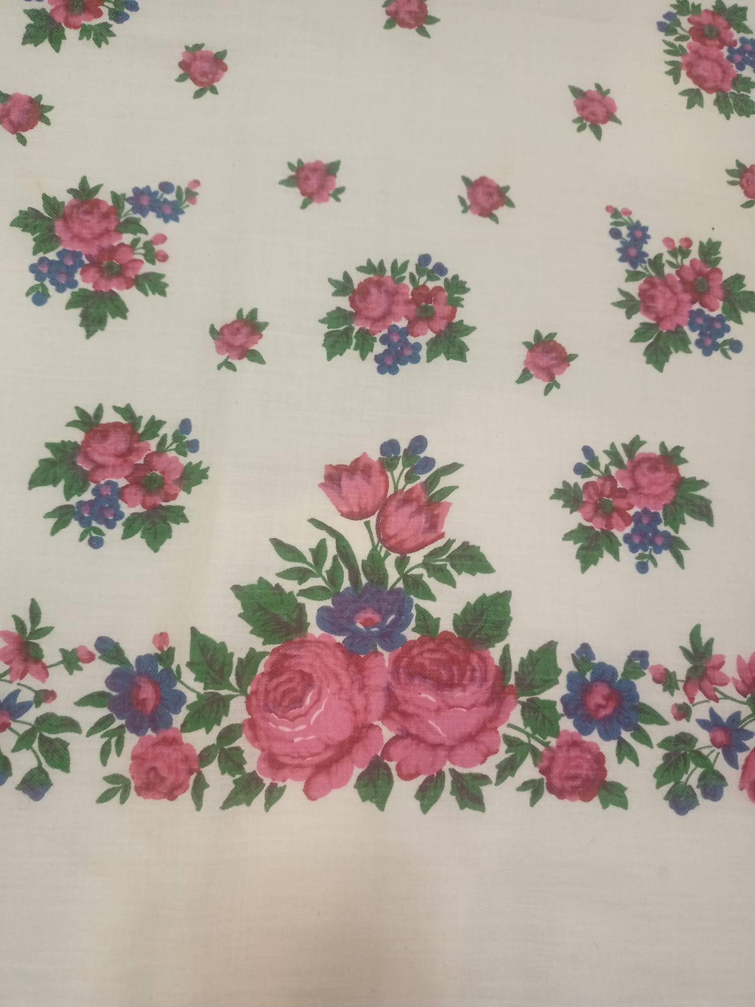 Вот такие платочки попались ко мне, один на шерсти, другой на хлопке (или смесовый) размер примерно 94см