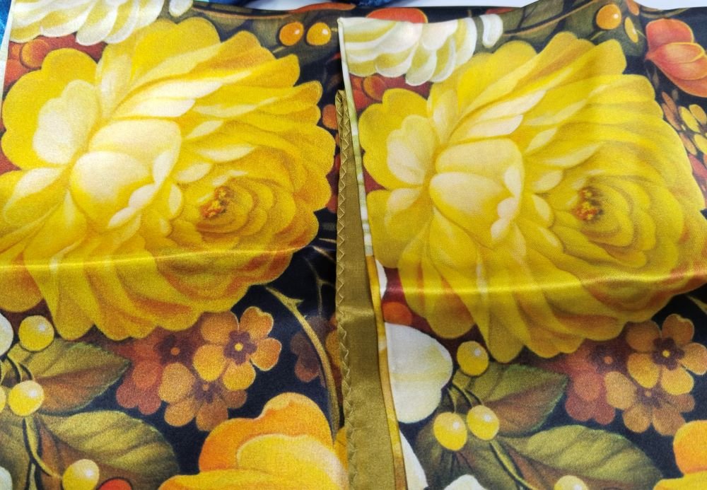 Кайма и немного оттенок крупных роз - вместо явной зеленцы теплый, темно-медовый цвет. Кайма, слева печать 18 декабря, справа - без даты И этот цвет ещё и в розах, плюсом рисунок немного пиксельный