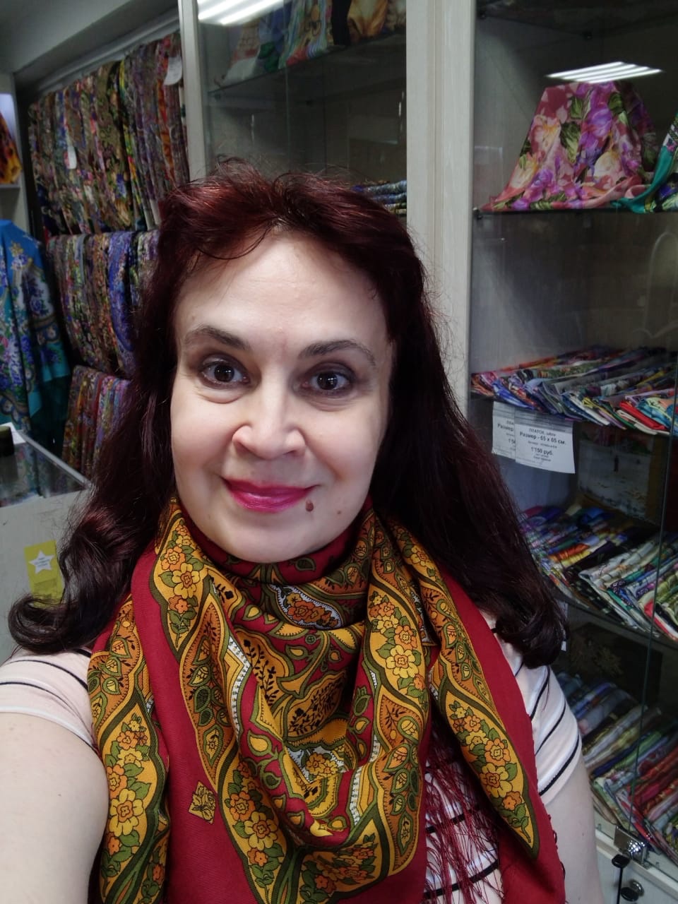 14й бесподобно на Вас! И Вы правы ,платки в роспуск вся красота видна! а когда 148см сворачивают колбасой на шее...вроде на сайте достаточно шарфов и маленьких платков..к чему этот маскарад , смотрятся странно, мягко говоря ,все эти"скрутки"😳😌
