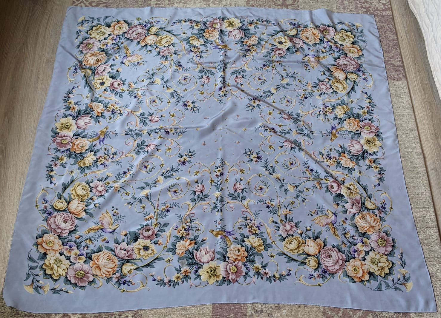 А потом случайно обнаружила новый рисунок в шёлке. Посколько очень горжусь именно шелковой коллекцией, подумала,что должна иметь хоть по одному колориту каждого рисунка. Долго выбирала. Остановилась на 11- серебристо- голубом.