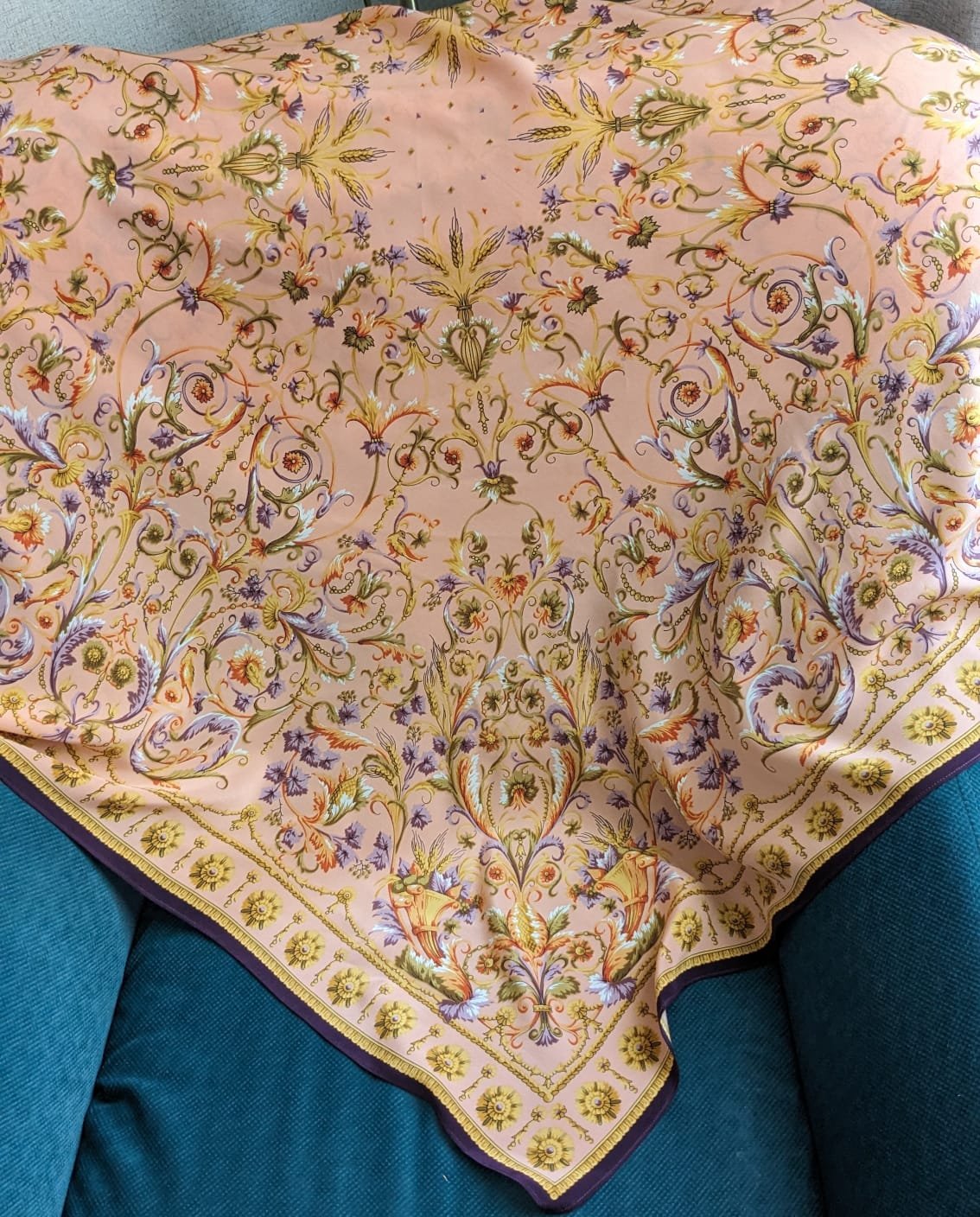 Покупала уже подшитый, но думаю совсем кайму убрать. Или уже надо с бахромой.