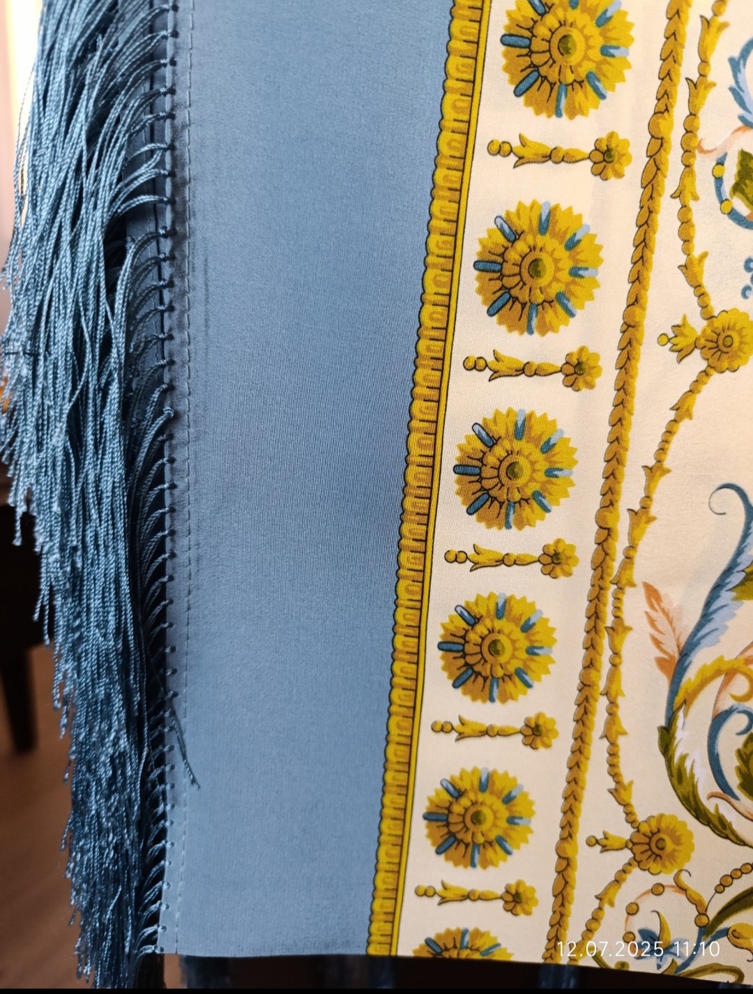 Покупала уже подшитый, но думаю совсем кайму убрать. Или уже надо с бахромой.