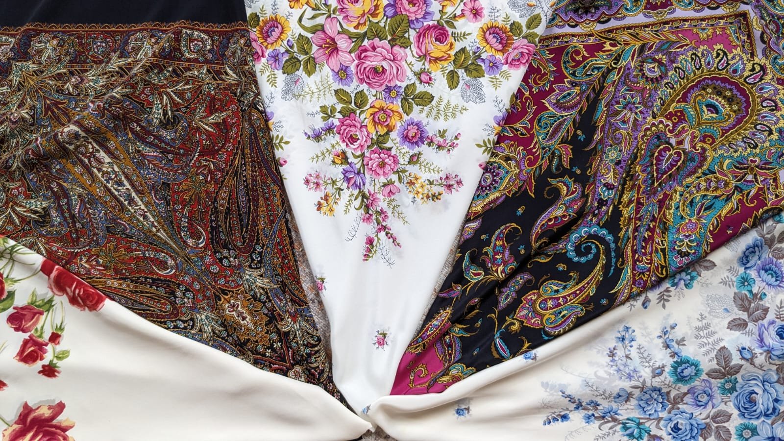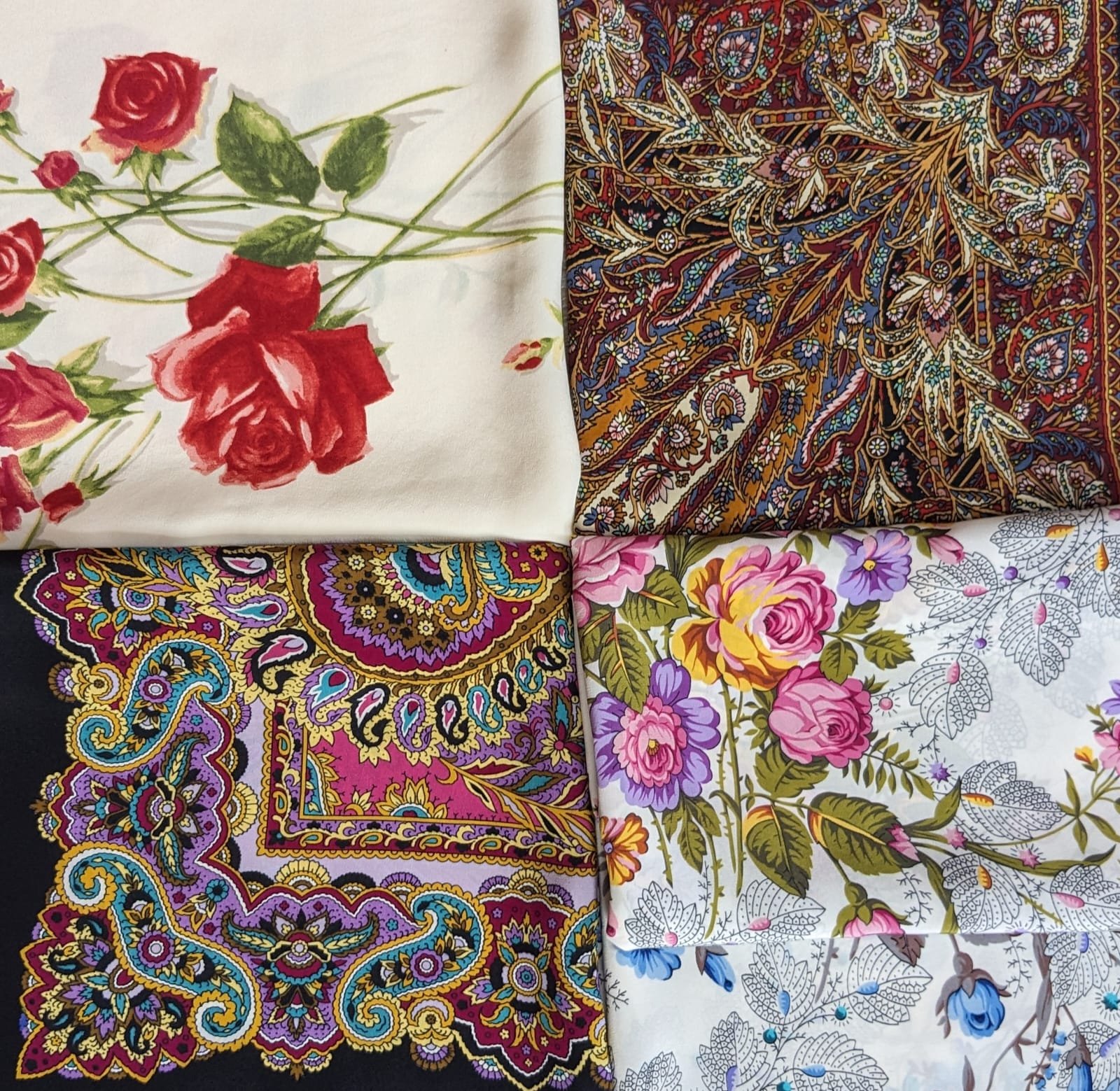 Наталия 72, большое спасибо!... Полюбовалась. Даже захотела что-то купить (Кликните, чтобы почитать, что спрятано под катом).... Большой шелк ношу нечасто (как и вообще шёлк,), поэтому большого шелка у меня всего 4 рисунка (если с учётом разных колоритов - то 5, а если с дублями, - два Жасмина-17, две шали Восточные сладости-14, - то всего 7 шалей). Причем Песню ветра (голубую) и голубой Жасмин мне удалось купить только благодаря вариантам печати ("классический" 13й меня "зеленит" обычно). Так что Ваша коллекция - просто "пиршество для глаз".