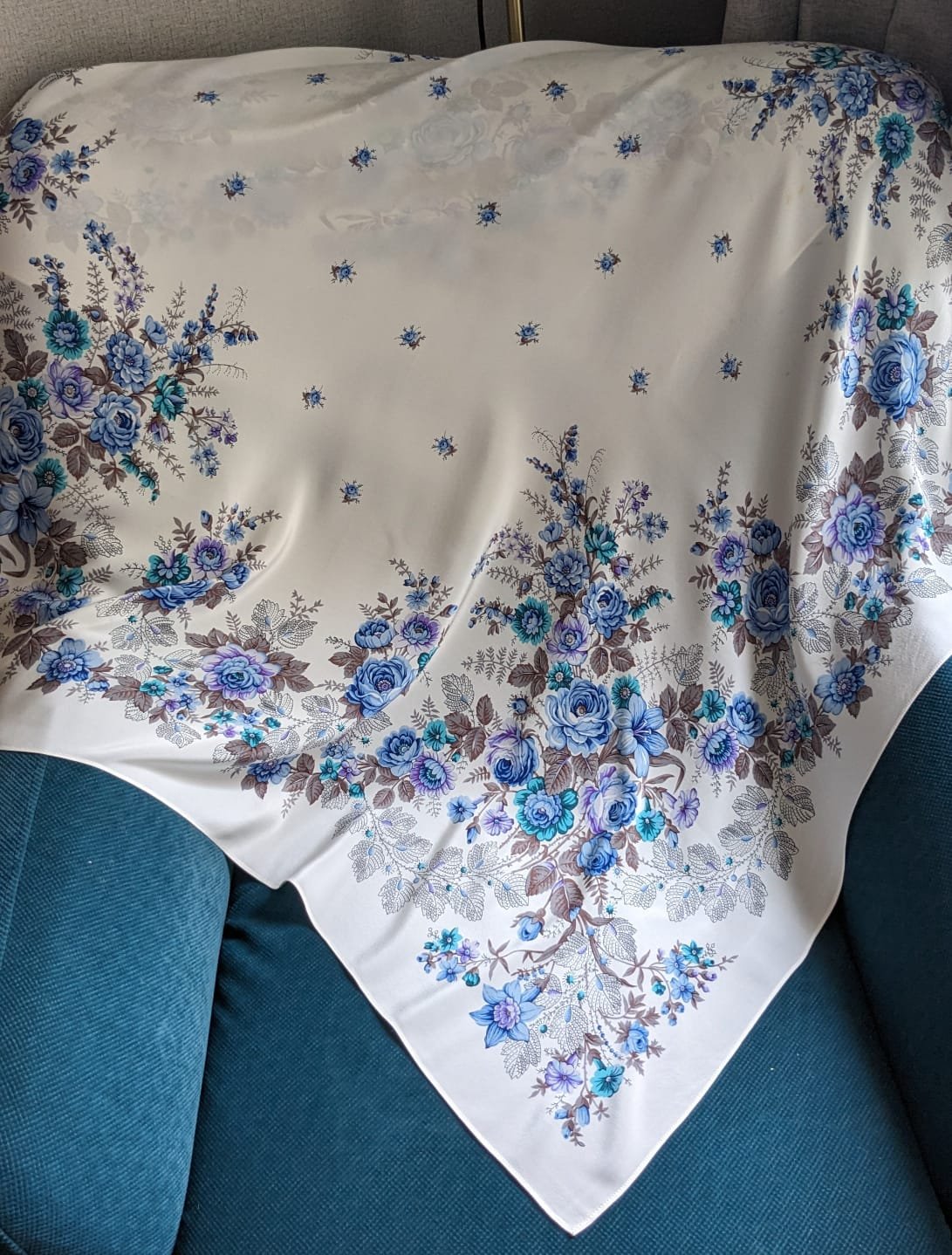 Первое свидание -1 Клары Зиновьевой. Очень люблю розы Клары Зиновьевой, аккуратные , округлые, настоящие. Платочек для юных , нежных девушек. Но и я собираюсь его на даче поносить. Летняя шалечка!