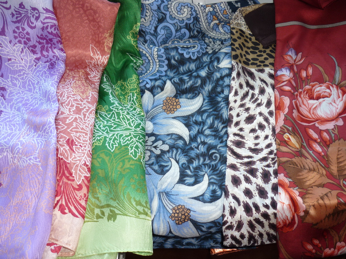 tsunlay, чудесные платочки собираются у Вас. Рекомендую еще присмотреться к атласным платкам Солнечный город. Уверена, Вам все четыре колорита дадут столько гормона, что радости не будет конца! Универсальнейшие платки. Я их повязываю сначала на голову, обернув концы вокруг шеи. Завязываю сзади НЕ туго на 2 узелка, потом снимаю "колпак" с головы и всё сооружение укладываю аккуратным "хомутиком", руками ослабив повязку по окружности. Уголок платка, тот, что на спине, прячу под вырез платья, джемпера. Классненько получается.