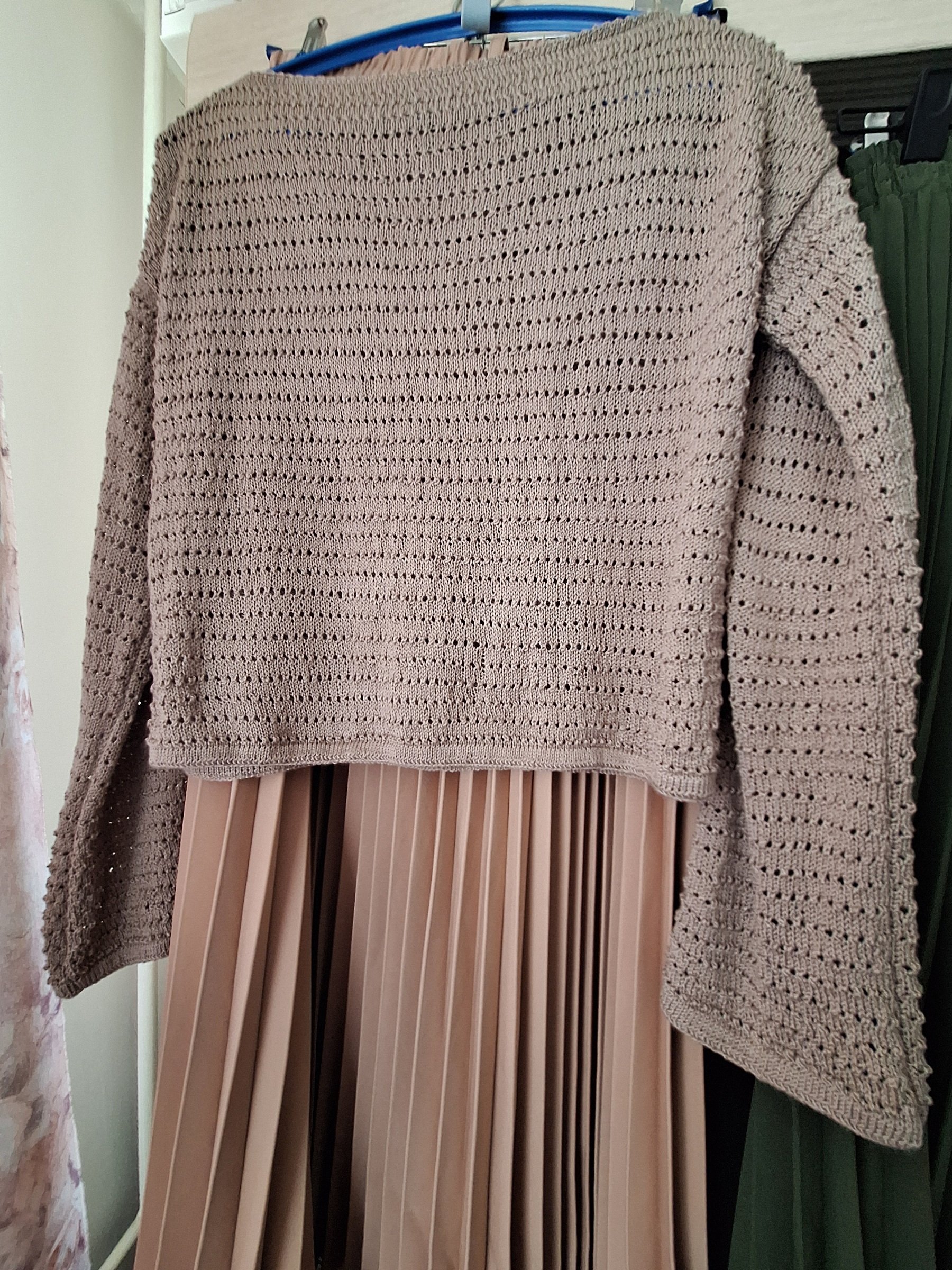 Бежевая из вискозы, голубая и цвет морской волны (еще не отпарила) хлопок