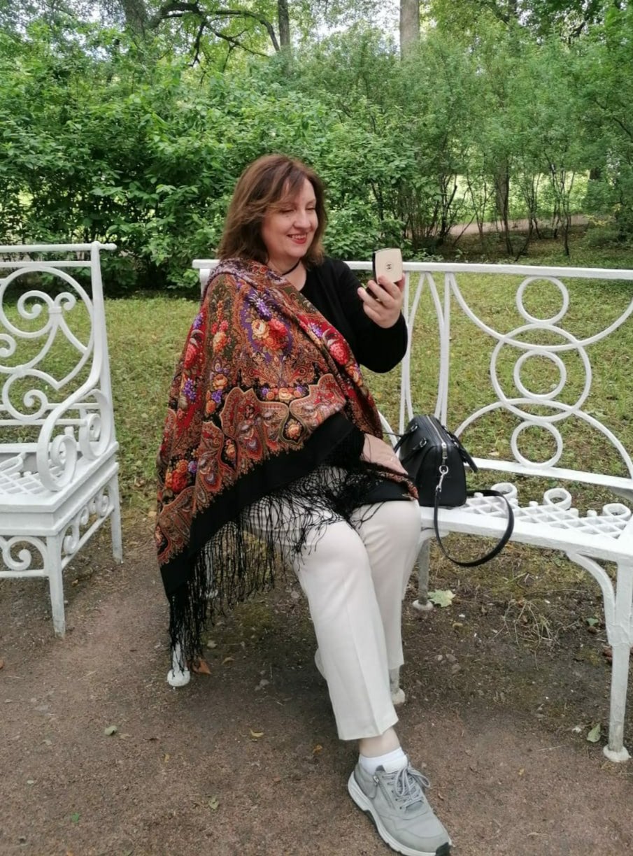 И Царевна 7,с простой бахромой. Поживший, но не слишком уставший платочек, ещё послужит. Я в нем так и пошла, было прохладно.