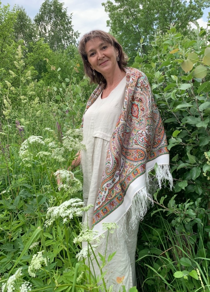 Финифть, колорит 16, шаль 148 см, художник Надежда Слащёва.