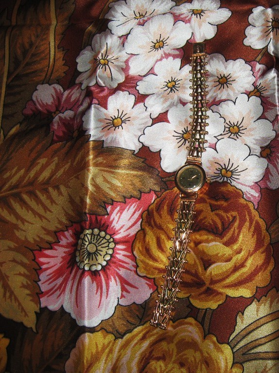 Интересная тема. Понравились все представленные часы, но, пожалуй, больше всего с финифтью. У меня отношения с часами не очень складываются. Что-то они у меня всё время ломаются. Хочу поддержать тему парочкой снимков своих самых любимых часов, они хорошо смотрятся с атласными платками, особенно если в рисунке есть золотой цвет.