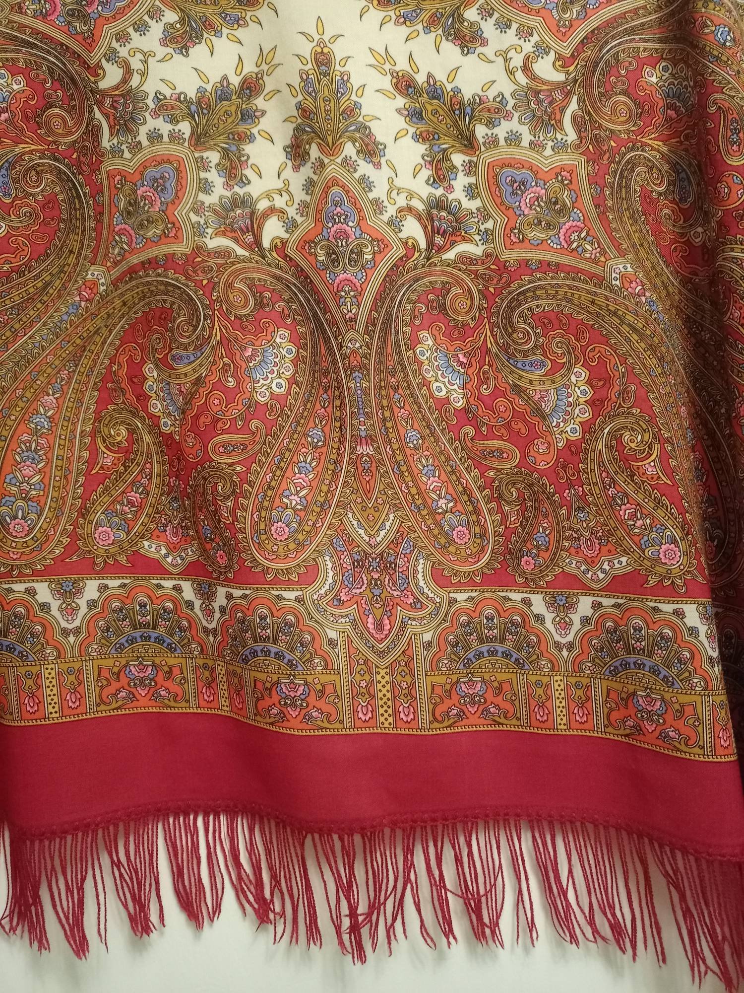 Пусть освещение так-себе-не-очень, но цвет сфотографировался правильно. Кайма бордово-коричневая. Номер колорита мне неизвестен.