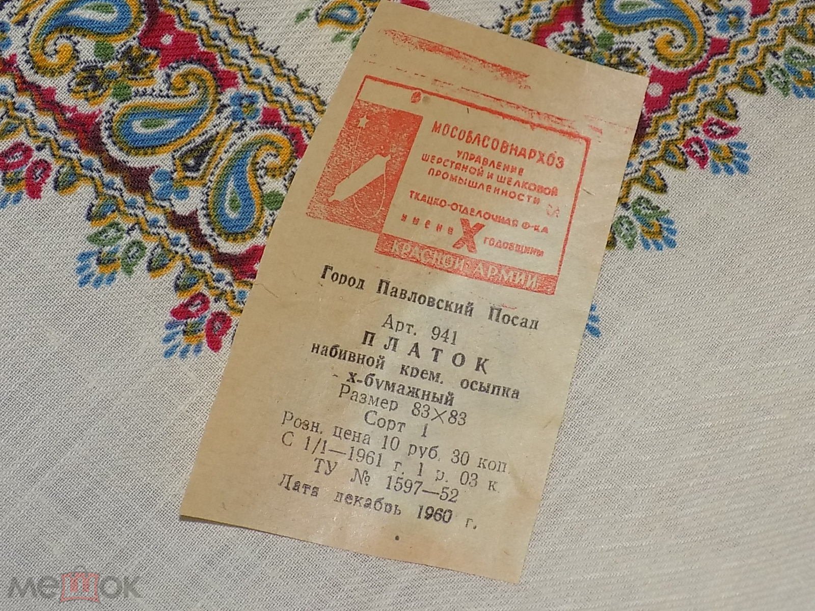 83 см, хлопок, цена в доденоминационных рублях.