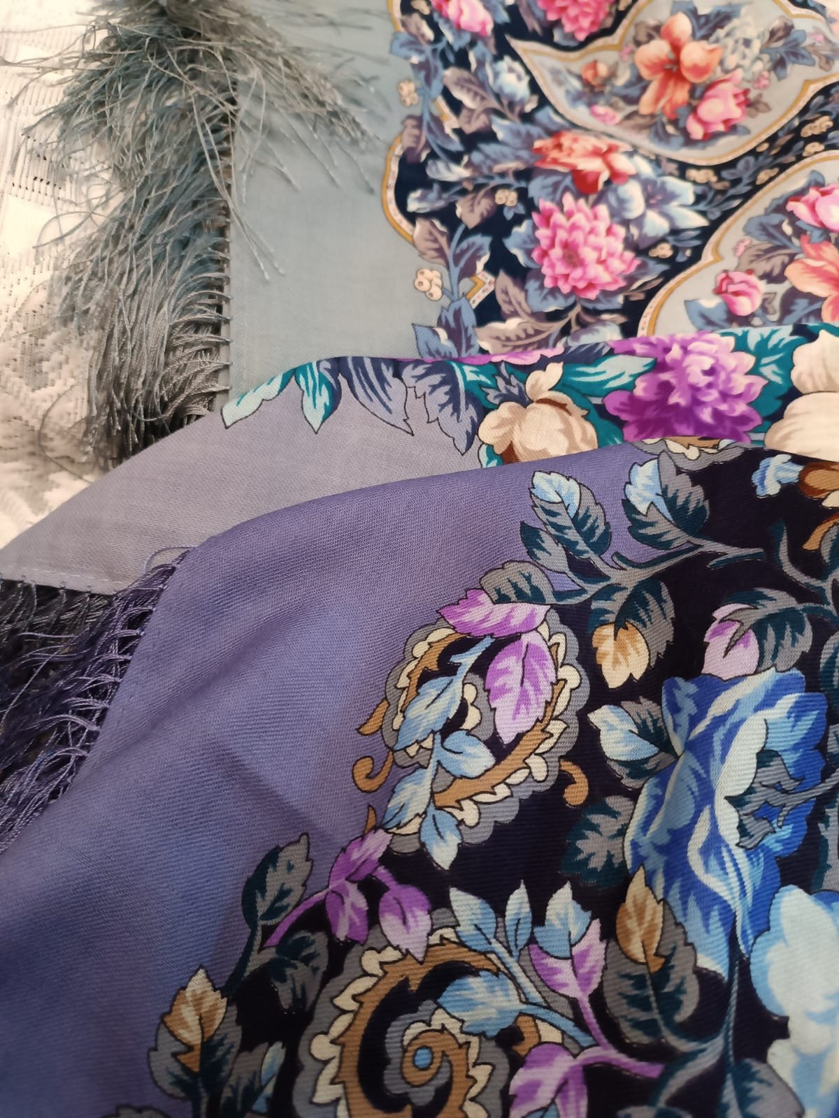 При сравнении колоритов уже купленных платков и платка, который купить хочется, одновременно раздирают 2 мысли: "смотри, новый похож на два твоих любимых, точно подойдёт" и "смотри, у тебя уже есть два таких же, куда тебе третий"