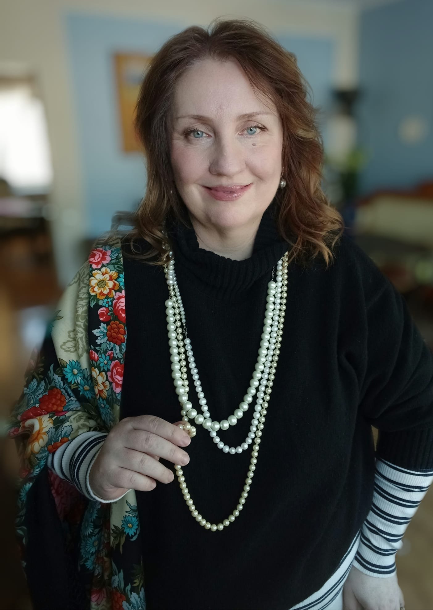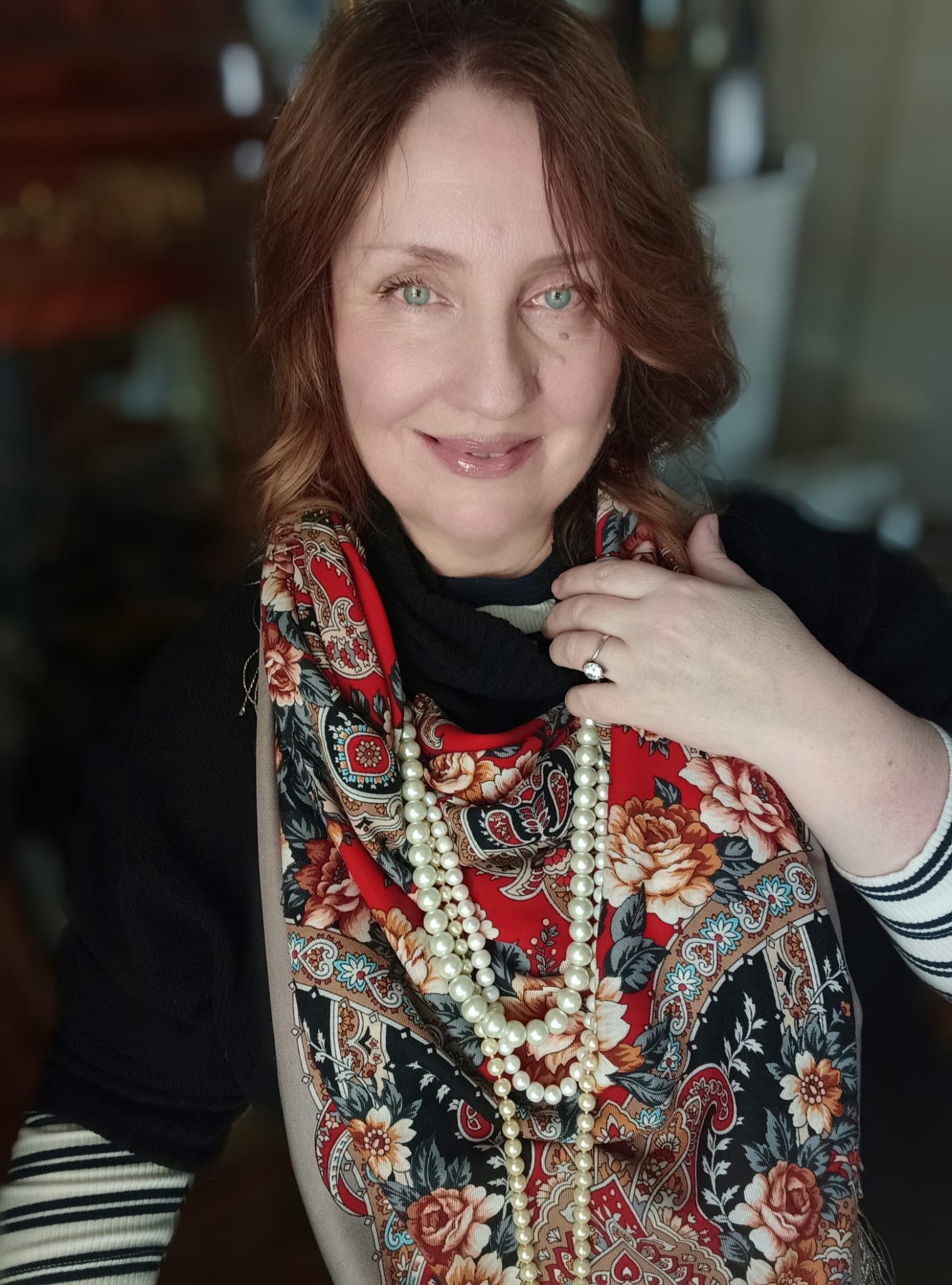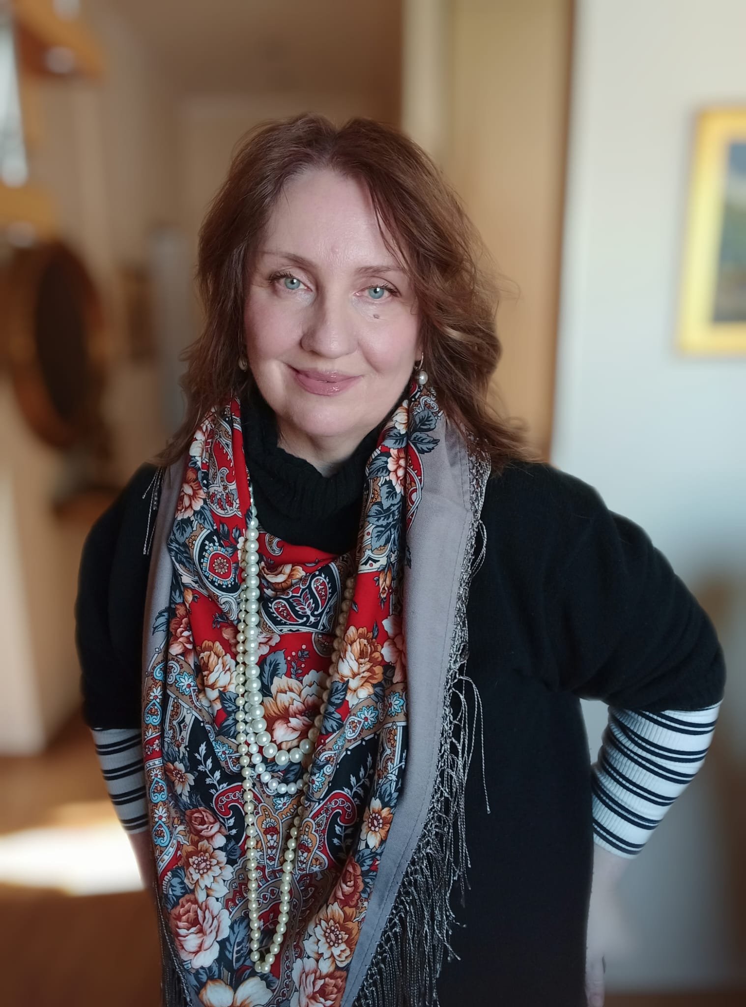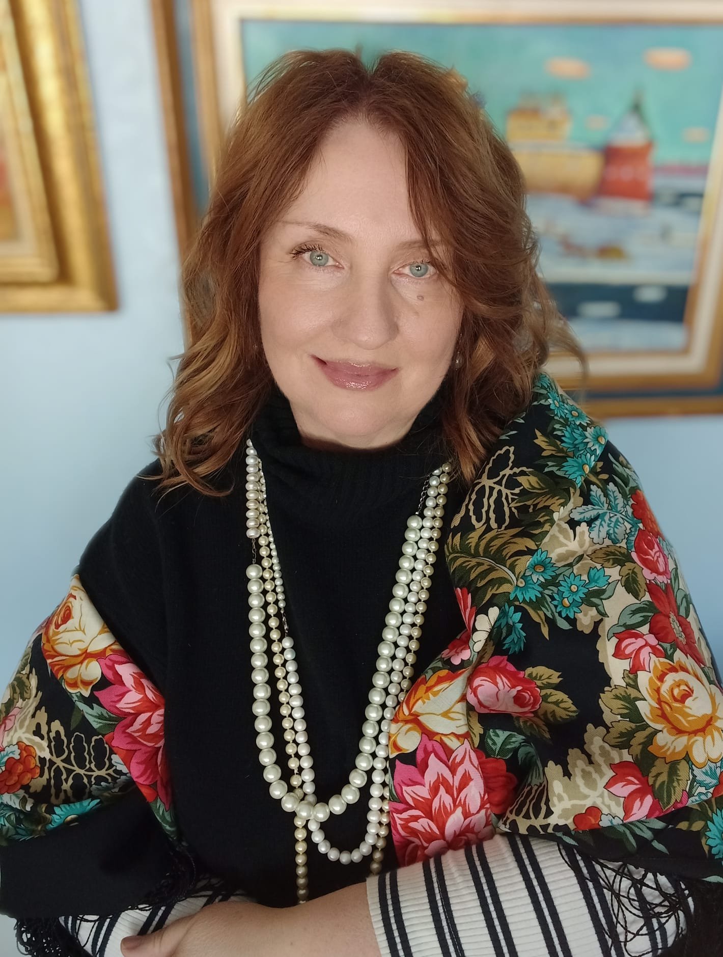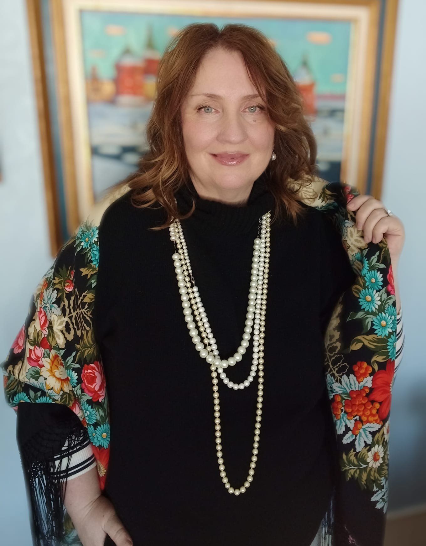 Эта красота - прямо в сердце! Духоподъемная красота! Милая, прекрасная, артистичная, нежная женщина в роскошной шали на фоне живописи.
