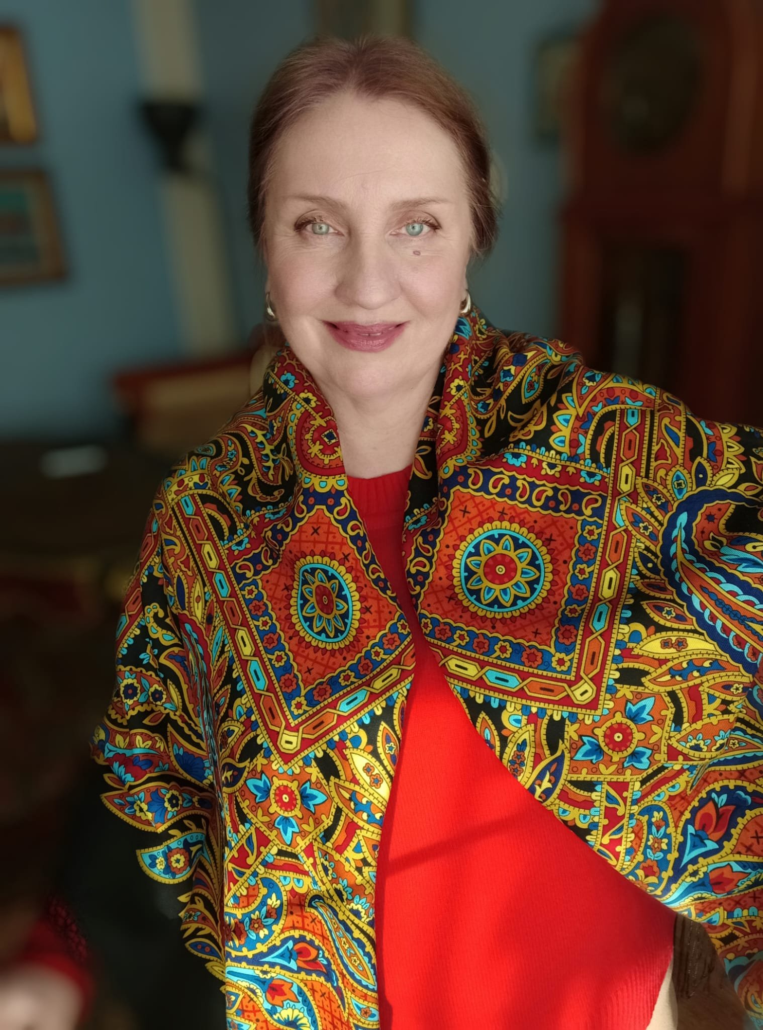 Ирина, чудесный информативный показ шелковой шали. Это искусство — так драпировать. Благодарю