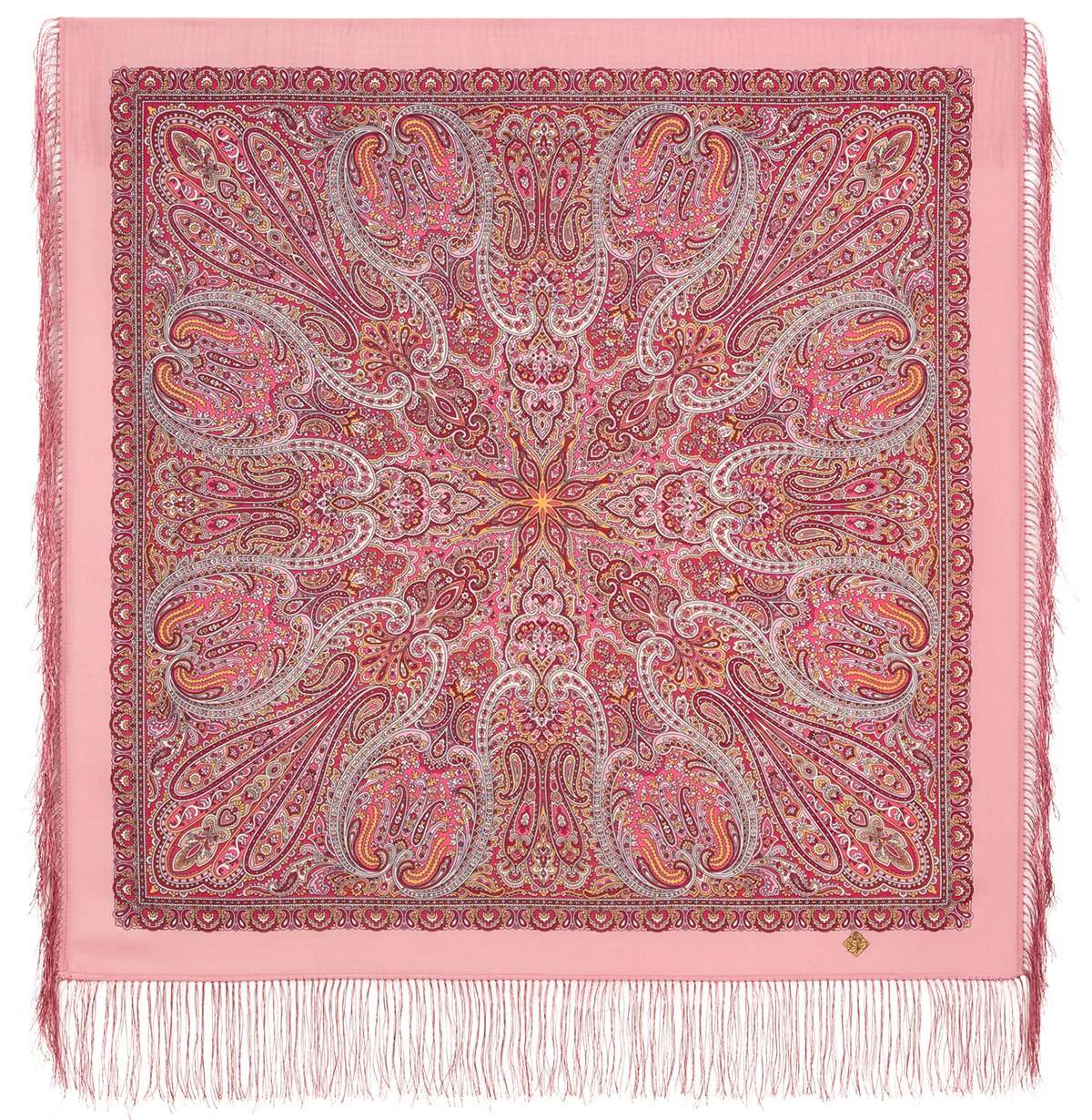 Платок шерстяной с шелковой бахромой, 89×89 см