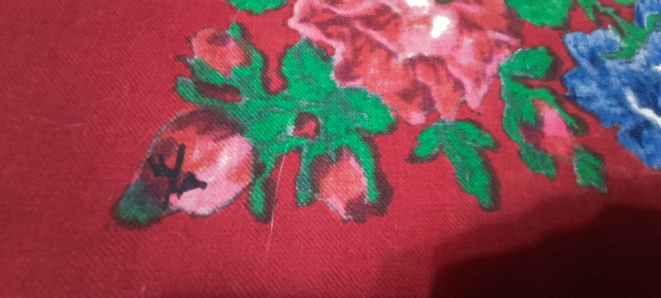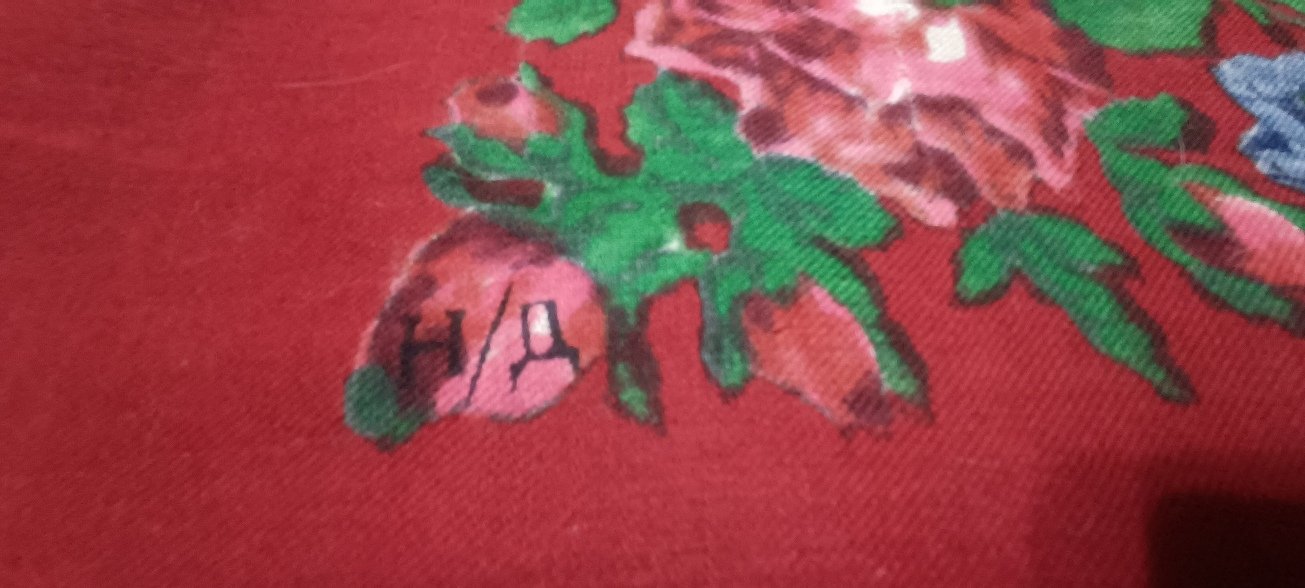 Шаль(по ощущениям хлопок/шерсть), размер 150×150, все стороны одинарная подгибка,без штампа, на изнанке по двум углам , какие-то буквенные обозначения.Может кто-нибудь подскажет, что они могут обозначать, кто производитель?!