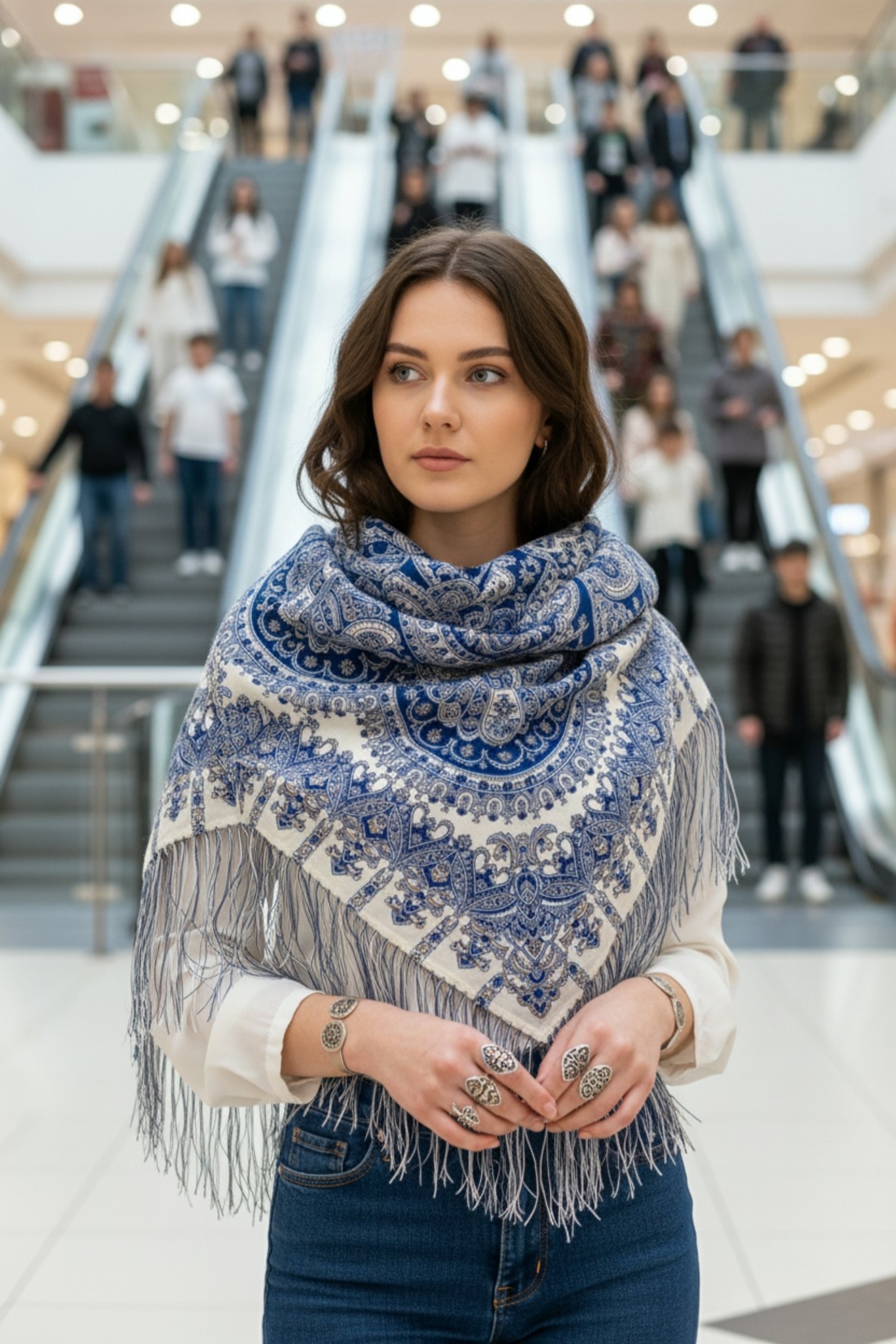 В стоимости платка доля за бахрому не очень велика, яисходила из начальной разницы, когда безбахромные только появились, тогда обсуждали именно разницу в цене, а не из нынешних галопирующих цен, когда вообще ничего неясно.
