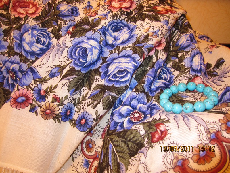 А я вчера получила посылку c ВУ-2, хоть и зарекалась, но решила сфотографировать- очень уж красивая шаль!
