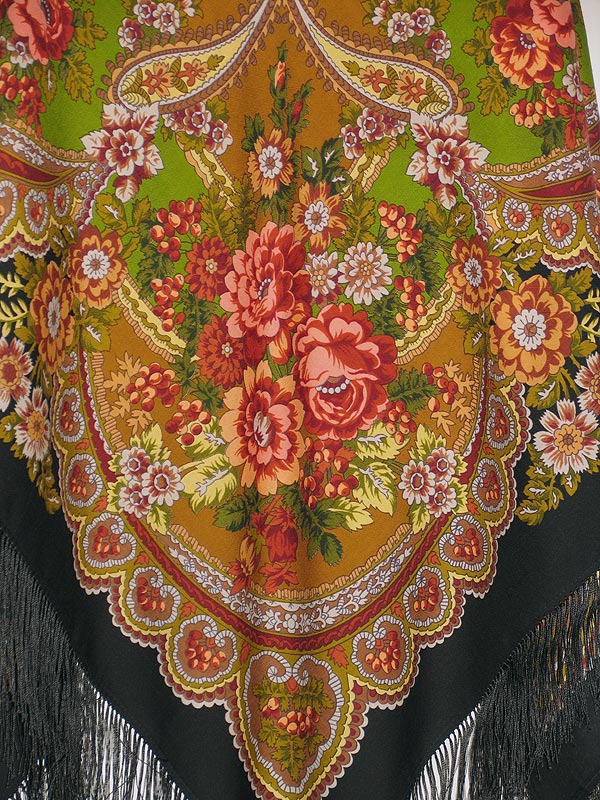 Платок с люрексом точно наш, выпускались такие платки в 80-х, начале 90-х годов. Автор Зубрицкий Виктор Иванович, главный художник фабрики. Название - "Пора цветения", № 131.argon писал(а):На интернет-аукционе попадались, в частности, платки, которые продавцы аттестуют как Павловопосадские либо предположительно таковые. Однако возникают на этот счет некоторые сомнения.