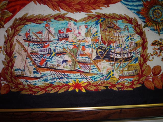 Детали платка Петр I, 90х90, шелк, ручная роспись. Продолжение ...